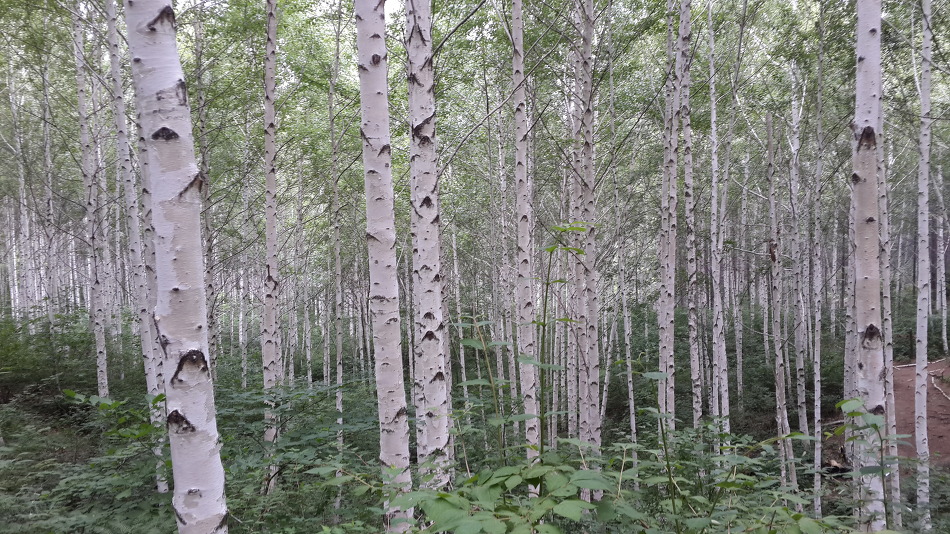 두번의 휴식후 도착한 자작나무숲...장관이다..재목이 단단하고 껍질이 잘 벗겨지며 줄기가 희고 추운지방에서