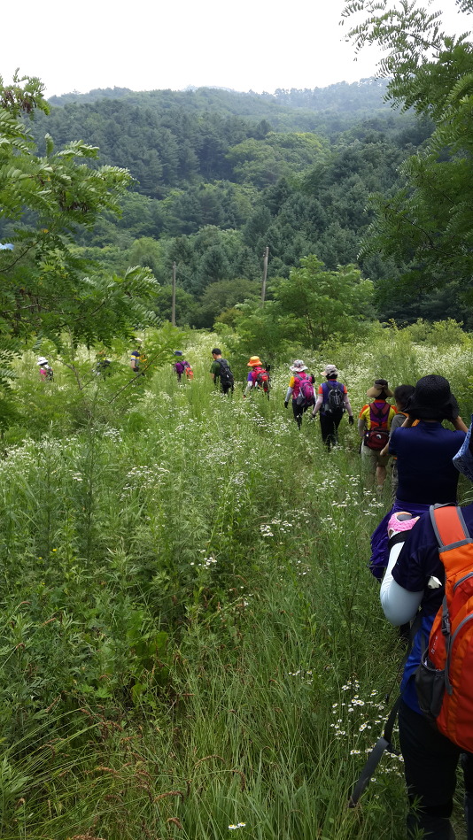 원대리 고개길에서 힐링트레킹출발..다행히 날씨가 조금 흐려 햇빛은 없지만 조금 오르기 시작하니 땀이 흐른다.