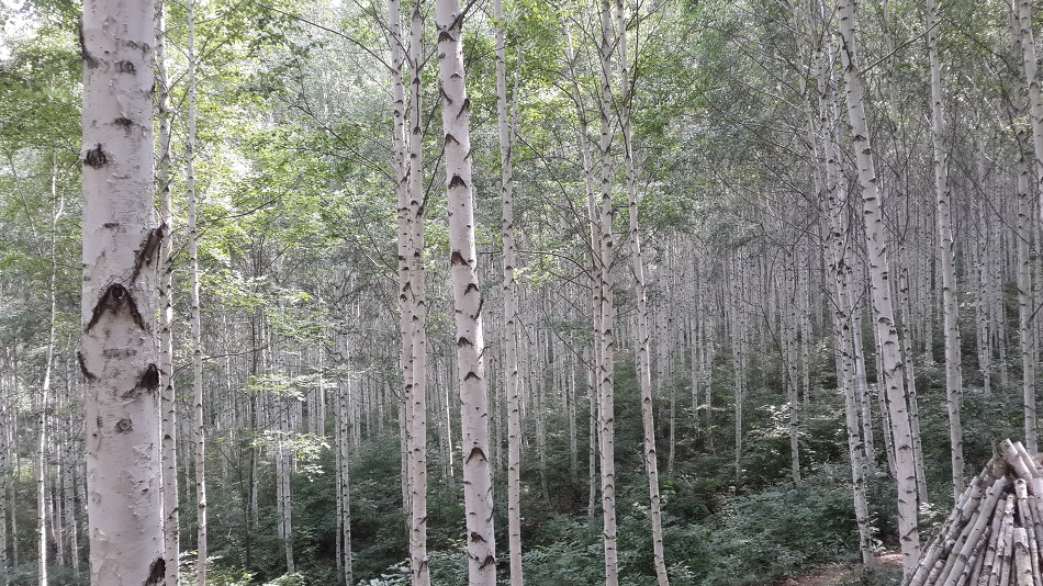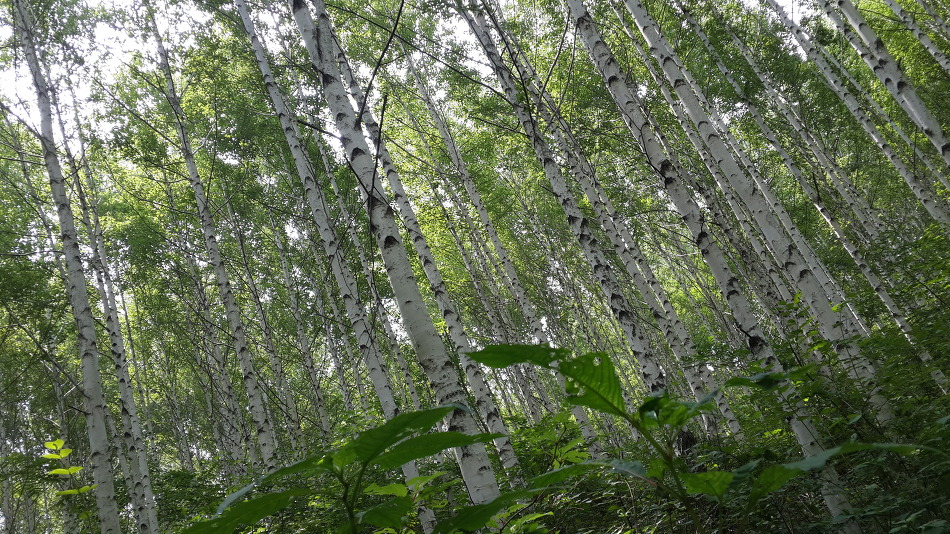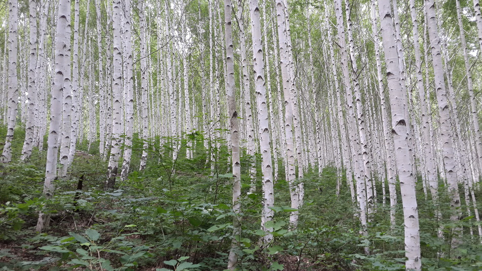 두번의 휴식후 도착한 자작나무숲...장관이다..재목이 단단하고 껍질이 잘 벗겨지며 줄기가 희고 추운지방에서