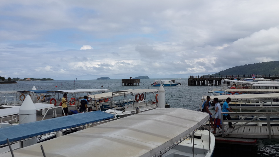세일링후 마무틱섬으로 이동하여 사바섬으로 가는 보트를 기다려 이동.