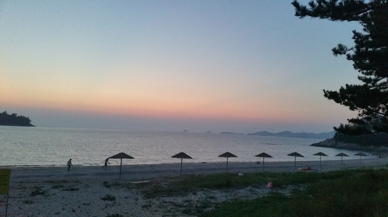 긴여정에 지진 몸의 피곤함이 해변에서 불어오는 바다바람과 소나무숲의 시원한 전경,그리고 파도소리에  깨끗이