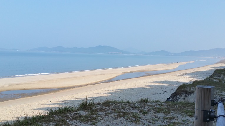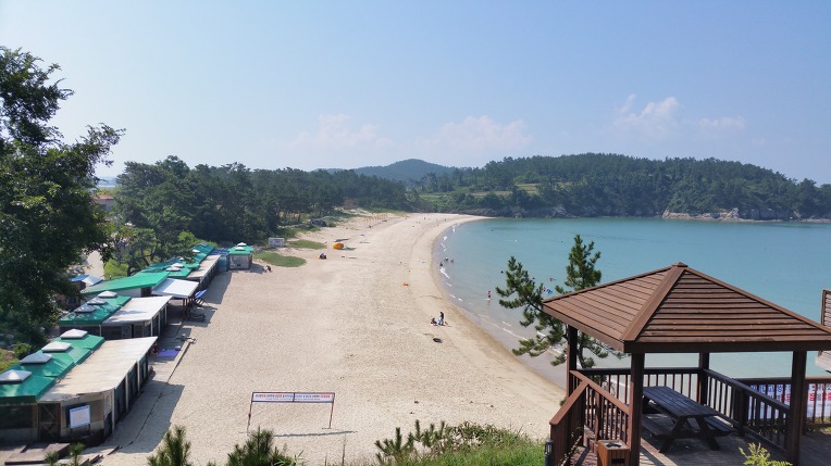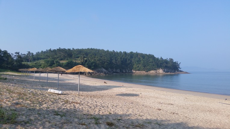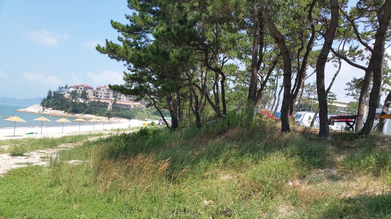 우전해수욕장을 멀리서 바라보면 마치 동남아 어느나라의 해변의 전경과도 같다.