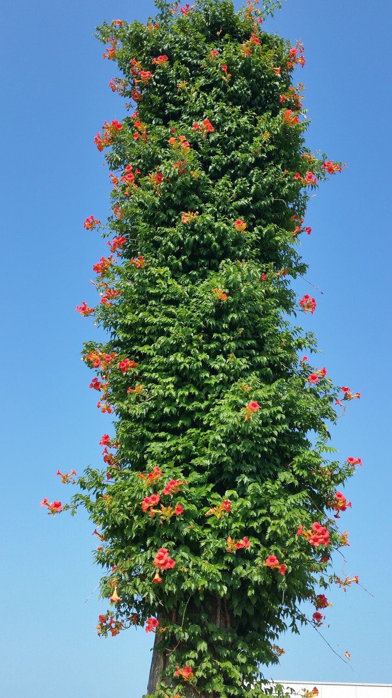 짱뚱어다리를 반환점으로 거대한 고목을 타고 올라가는 상사화의 꽃말을 가진 능소화보고는 다시 되돌아 천년숲길을 걷는다.