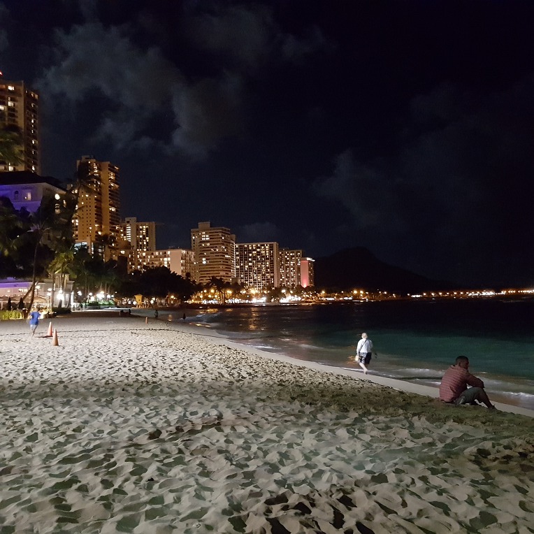 해가 떨어지고 나서야 와이키키해변을 찾다.