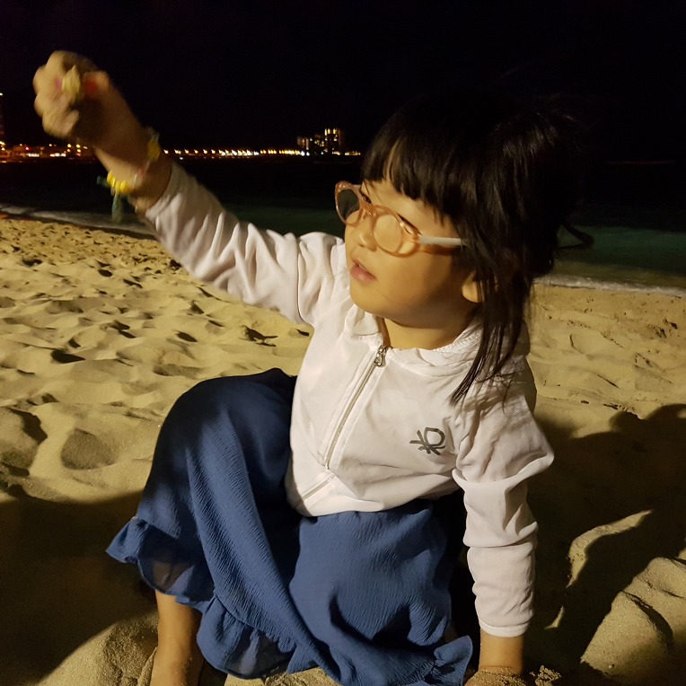 손녀도 어느정도 적응이되어 바다물과 해변의 모래를 적당히 즐길줄 안다.