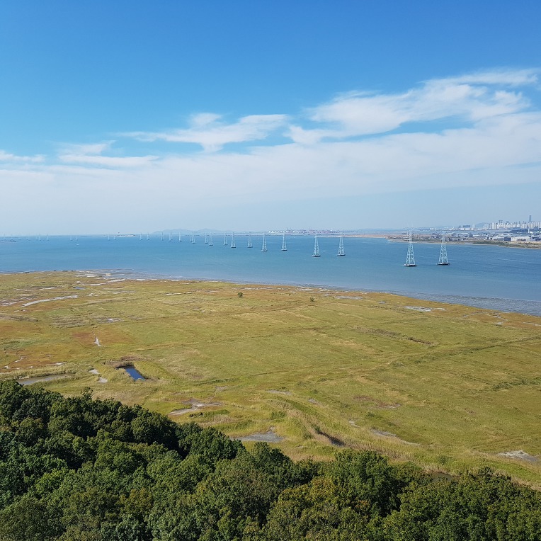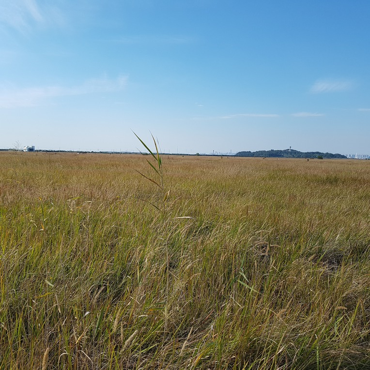 멀리 수락산과 그뒤의 관악산모습도 조망이되며 넓은벌이 조그마한 갈대로 쌓인 엄청난 갯벌은 특히한 모습을