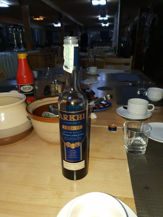 야채국수와 만두로 저녁을 먹으면서 일행들과 칭키스칸보드카로 기분을 내어본다.