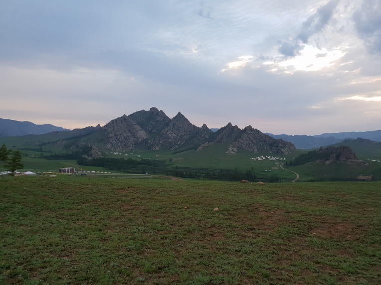 우리의 게르와 더불어 많은 게르캠프가 이곳저곳에 산재해 있고 바위산들이 주변을 둘어쌓여있고 아래부분은