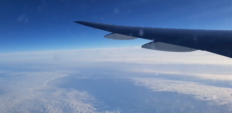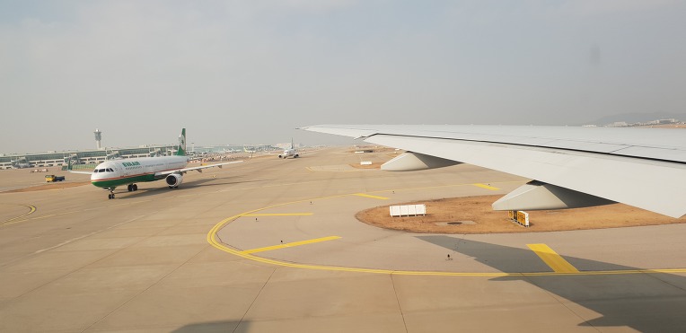 이륙허가가 늦어 40여분을 지체한 후 이륙한 비행은 9,180km를 날아야하니 열한시간정도가 소요되는