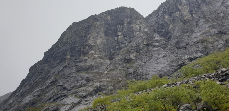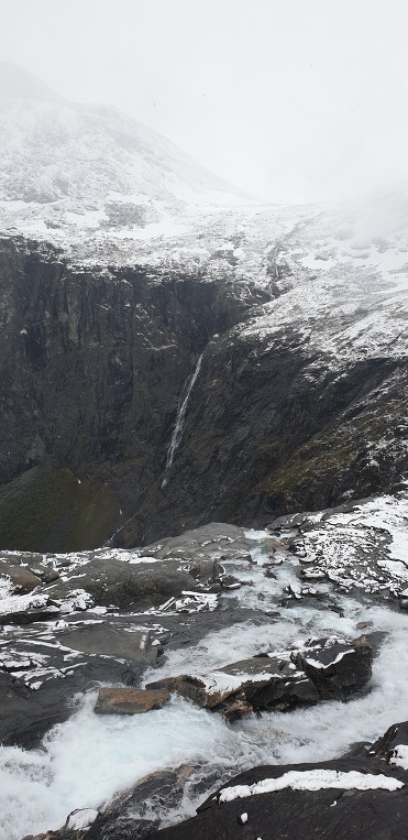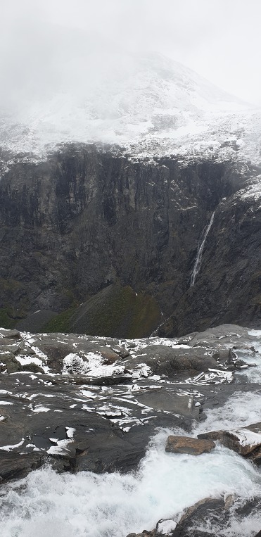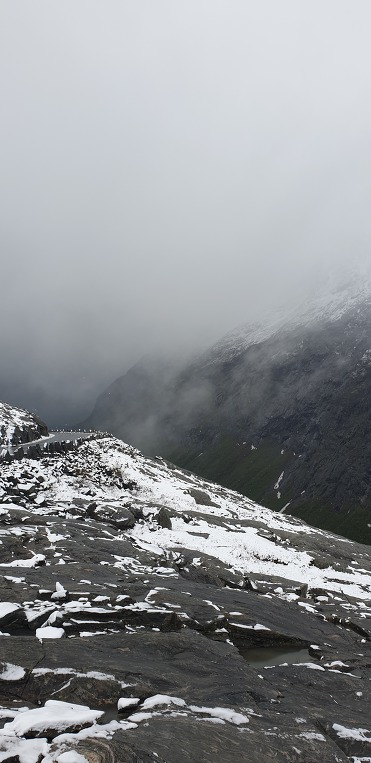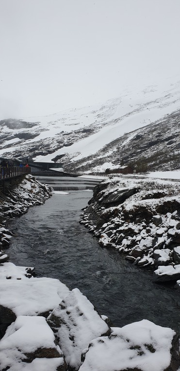 트롤스버겐. 과연 장관의 경관을 보이고있다. 눈쌓인 전경을 멀리서 바라보았는데 이곳은 눈이 내리고있다.