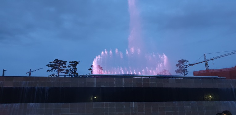 매일 20:10분부터 30여분정도 음악에 맞춰 분수가 가동되니 볼만한 구경거리다.