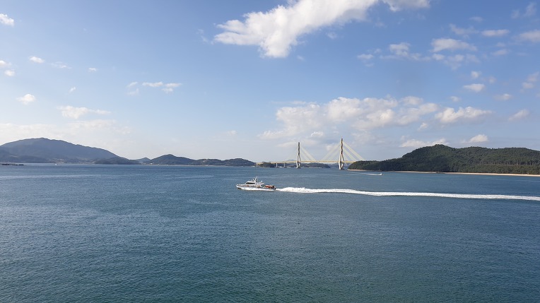 푸른바다를 달리는 배안의 낭만이 그만이다. 끝없는 수평선을 바라보면서 운항하여 가도가도 수평선은 그대로다.