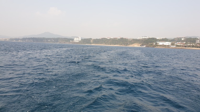 아름다운 중문해변의 경관과 며칠전 보았던 주상절리를 이번에는 바다에서 바라본다.
