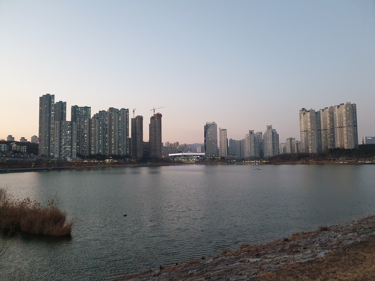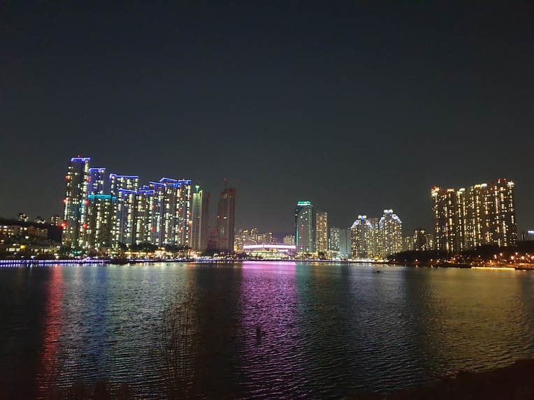 호수를 둘러 고층아파트가 즐비하고 주변으로 상가와 음식점과 커피숍들이니 불야성이다.