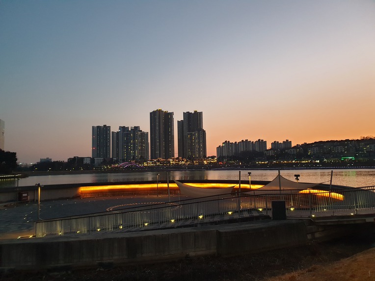 호수를 둘러 고층아파트가 즐비하고 주변으로 상가와 음식점과 커피숍들이니 불야성이다.