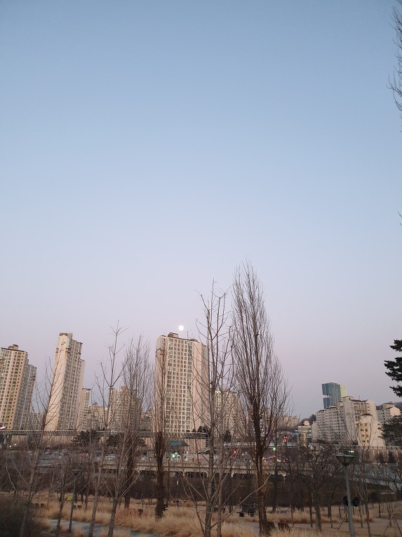 마침 오늘이 정월대보름이다. 초저녁 달이 훤하니 하늘에 떴다.