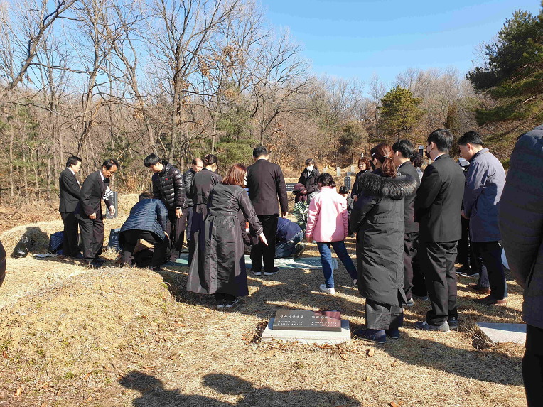 발인일에도 흐리고 비온다는 예보와 달리 쾌청하고 다소 싸늘한 가운데 새벽에 화장장으로해서 선산에