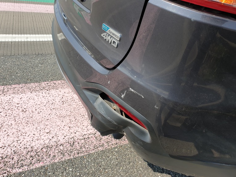 우선 차량을 갓길로 뺀다음 내려보니 뒷차의 운전자가 '갑자기 브레이크를 밟으면 어떻하냐?'고 항의한다.