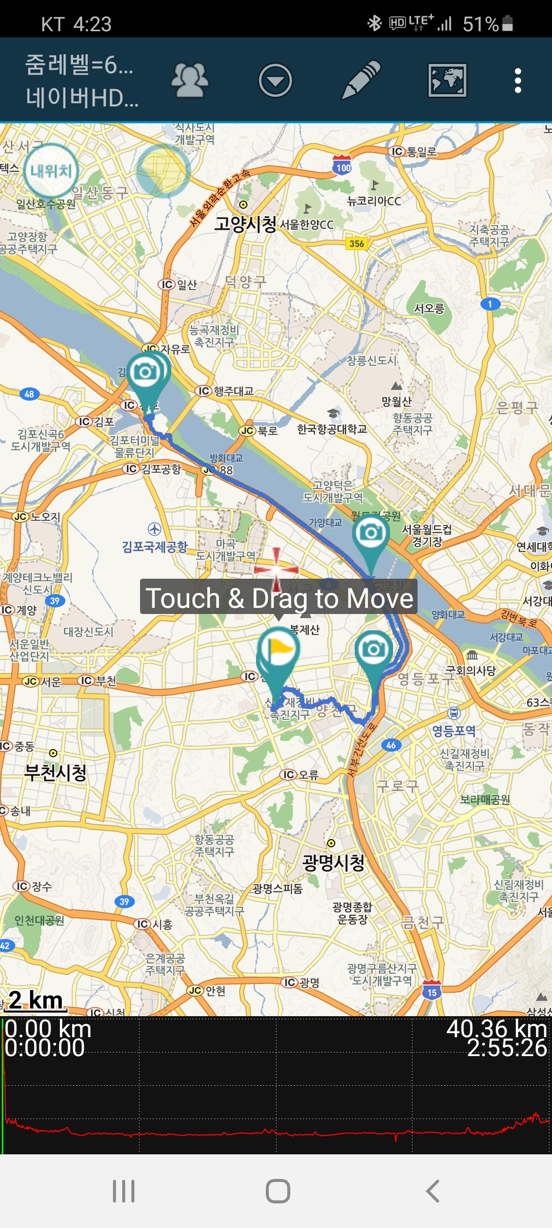 방화교에서 화장실을 다녀오고 물 한모금을 마신후 아라뱃길입구까지 달린다.