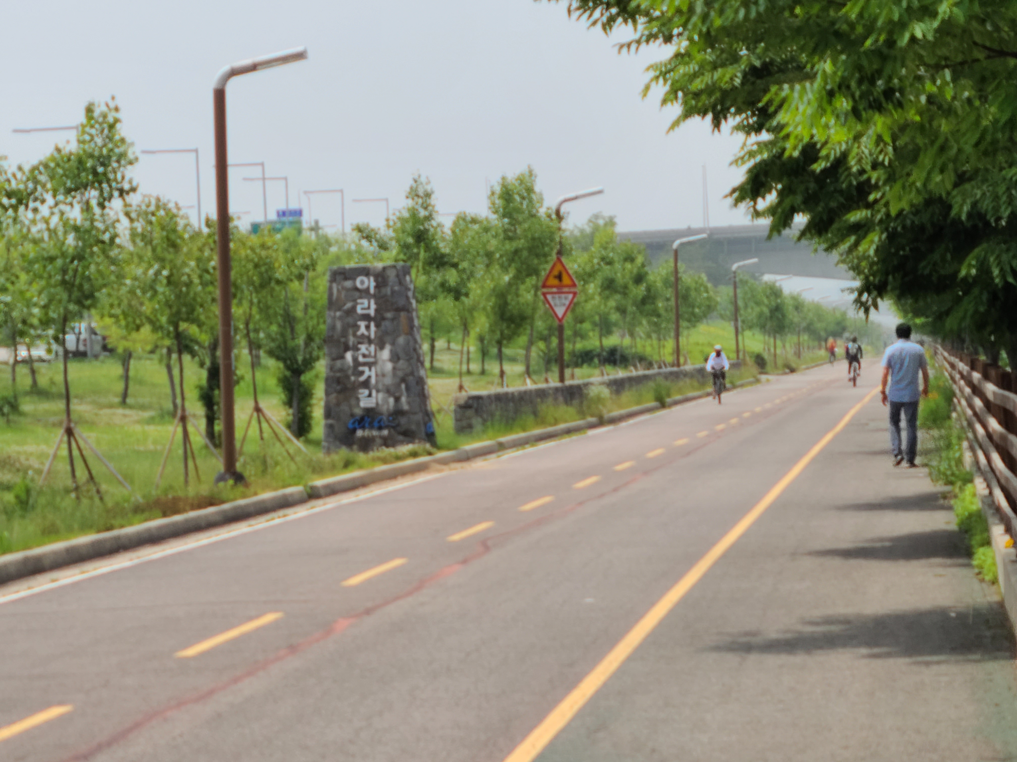 2년이상이 지나 아라뱃길을 달려본다. 날씨가 좋았으면 금상첨화이련만 미세먼지가 자욱하고 민감한 사람들은