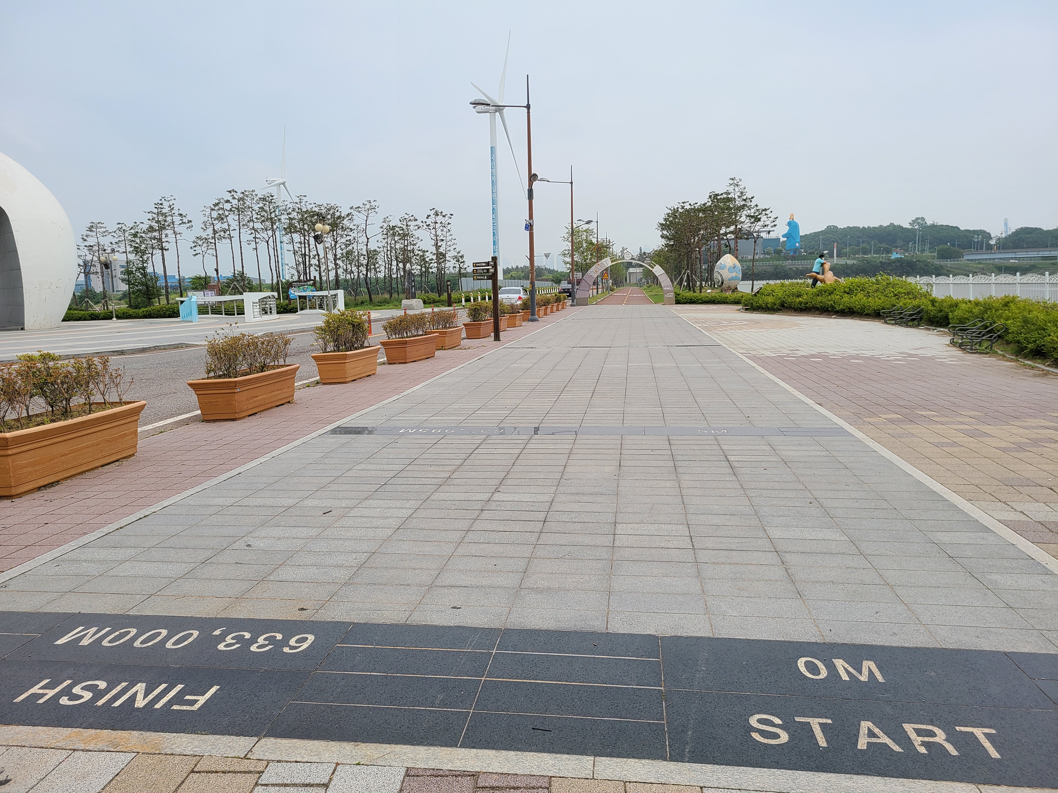 구간이 정확하게 몇미터인지는 모르지만 제로가 되어야 아라뱃길종점이다.