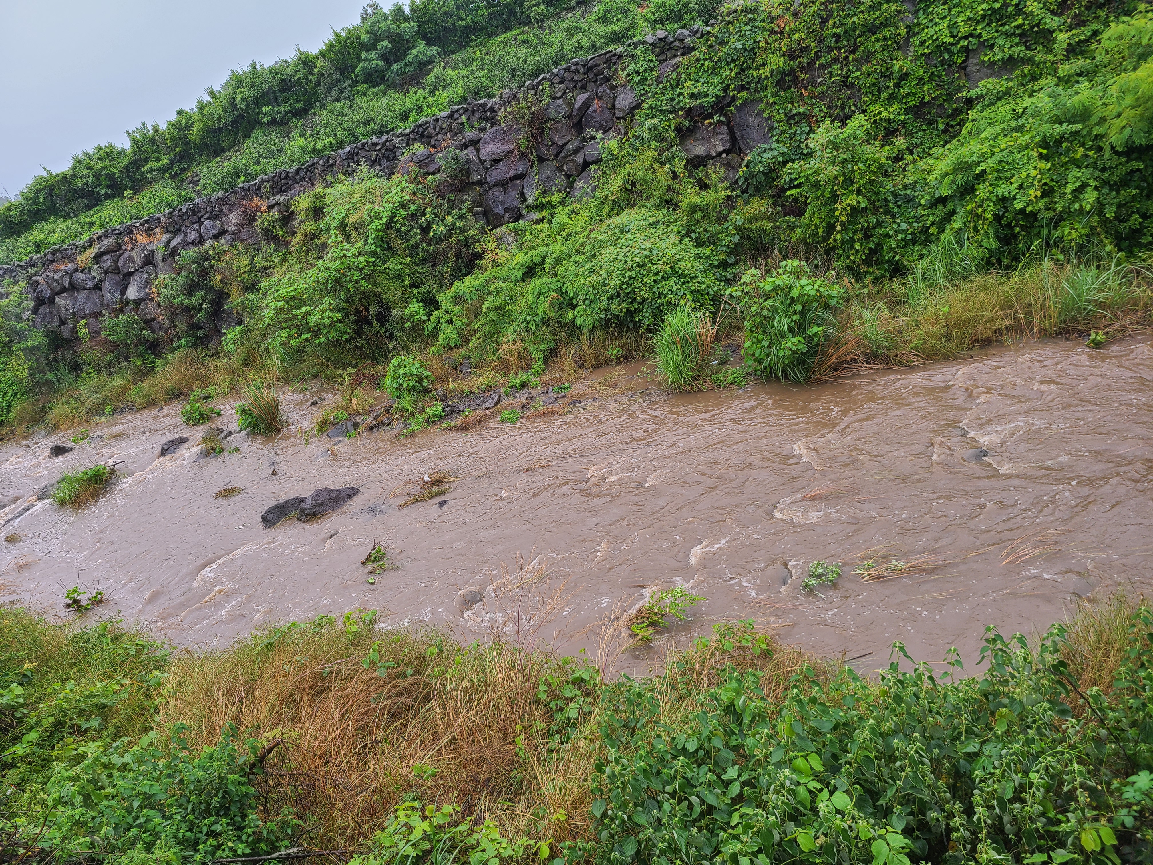 칭화 마을을 지나고 항몽 유적지로 접어들 무렵에는 빗줄기는 거세어지고 도로는 물길이 흐르고 등산화 안에
