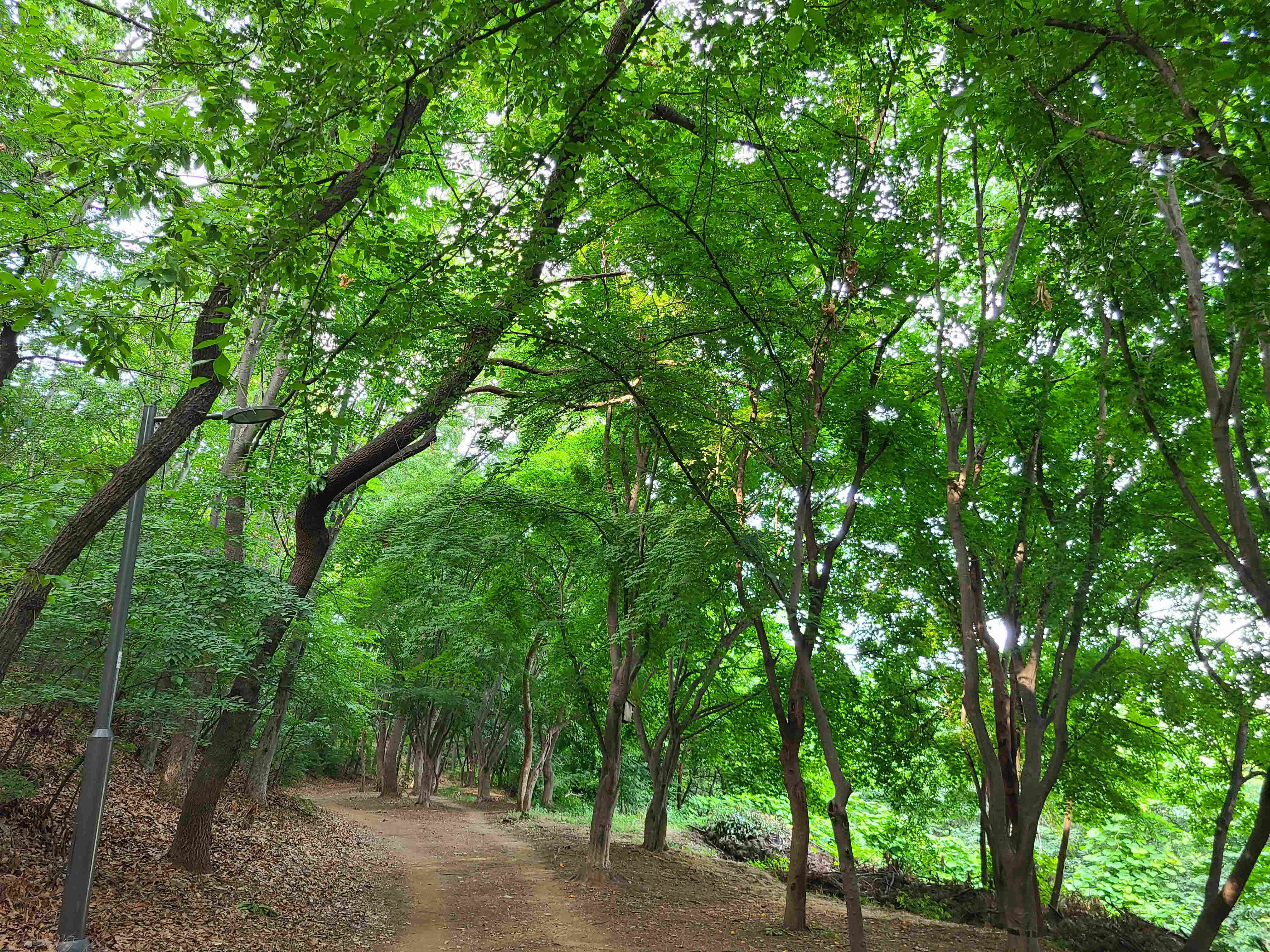 책상에 앉았다가 오후엔 날씨도 덥고 졸리며 제대로 공부가 되지 않으니 네시가 지나 숲길을 걷는다.