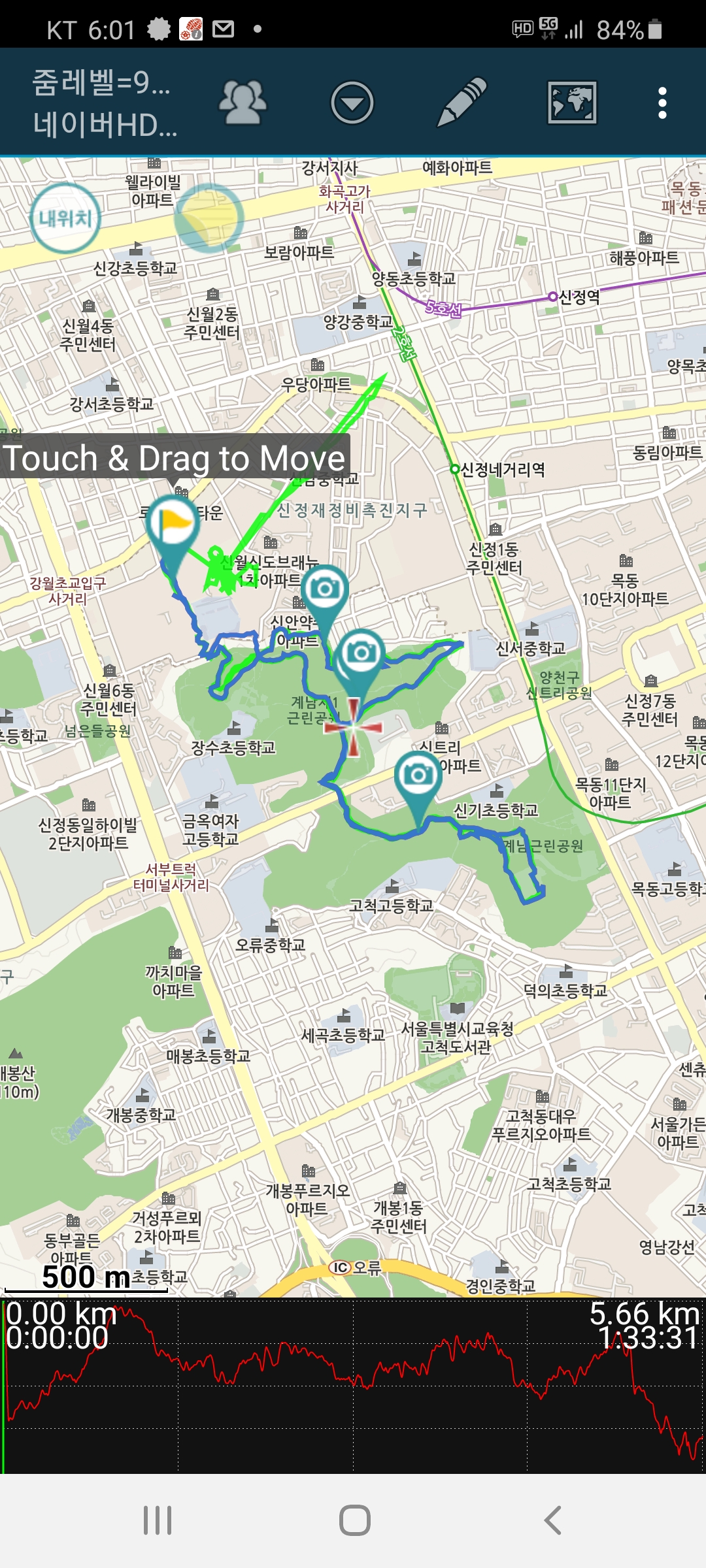 집을 출발하여 장군정을 경유하여 정낭고개, 신정배수지를 돌아 다락골약수터를 지나 원점으로 돌아오면