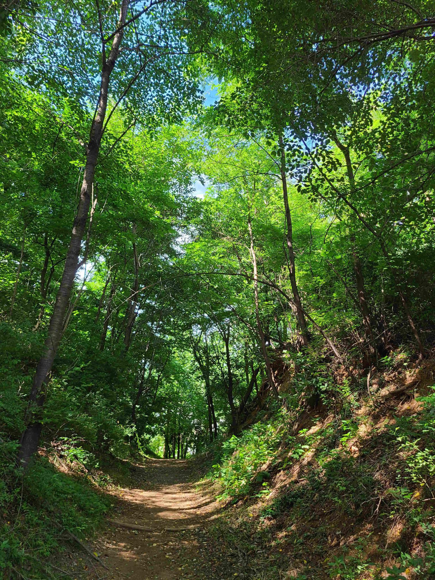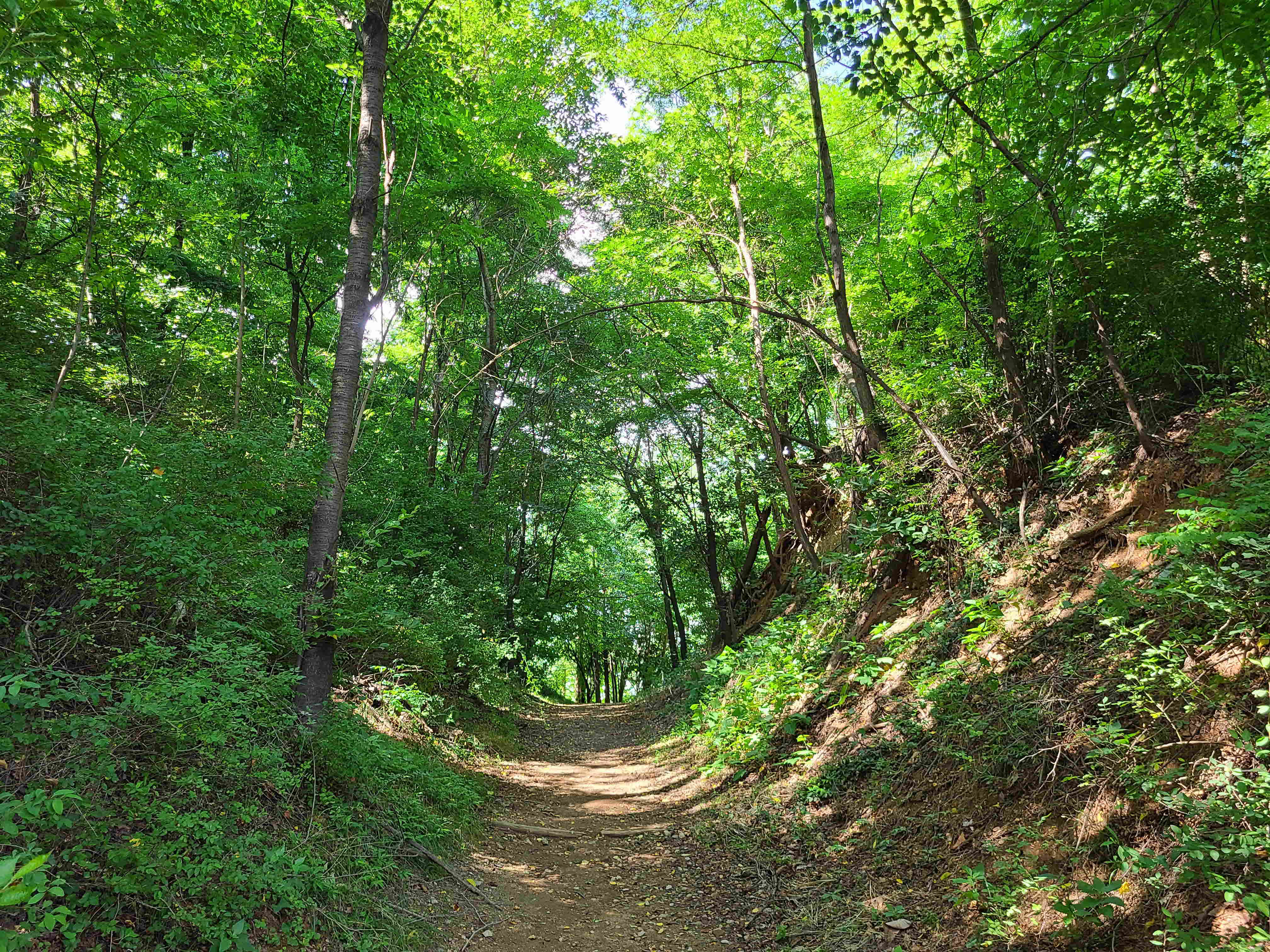 숲속길을 걷고 걸어 쉼터에서 잠간 휴식을 취하고 과일을 하나 먹고는 발길을 돌린다.