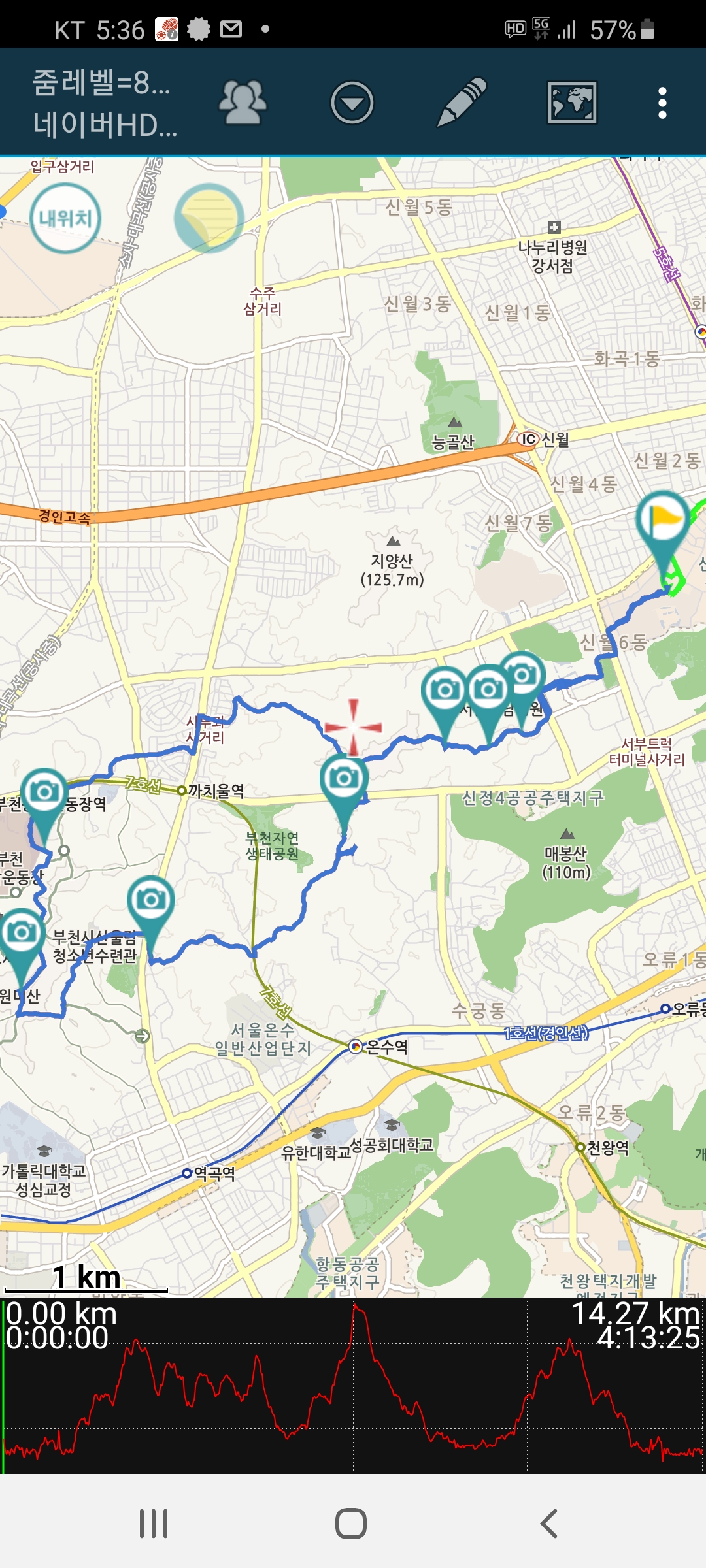 3.양천차고지-신정산-국기봉-원각사-원미산-작동산-귀가, 14.27km