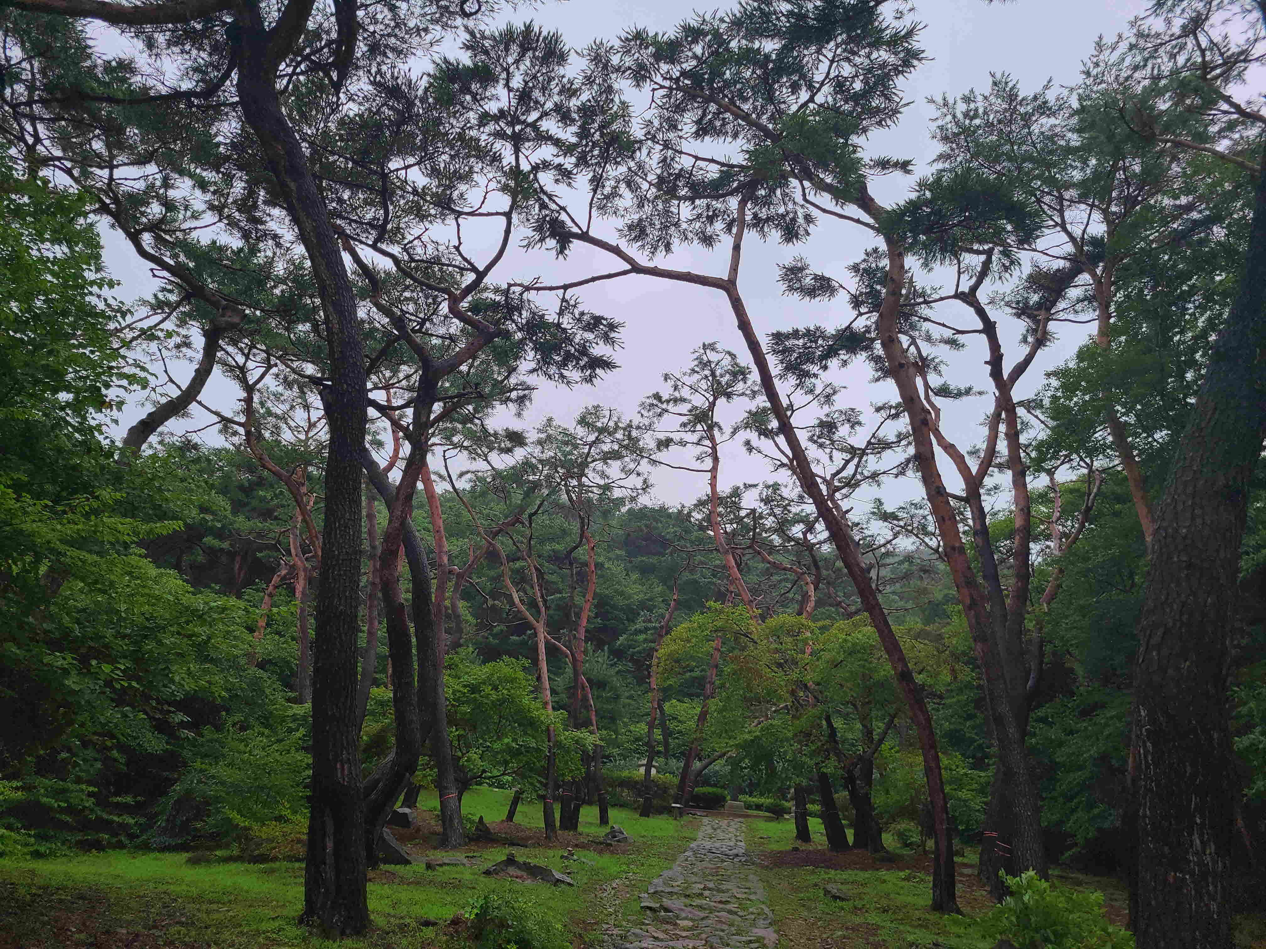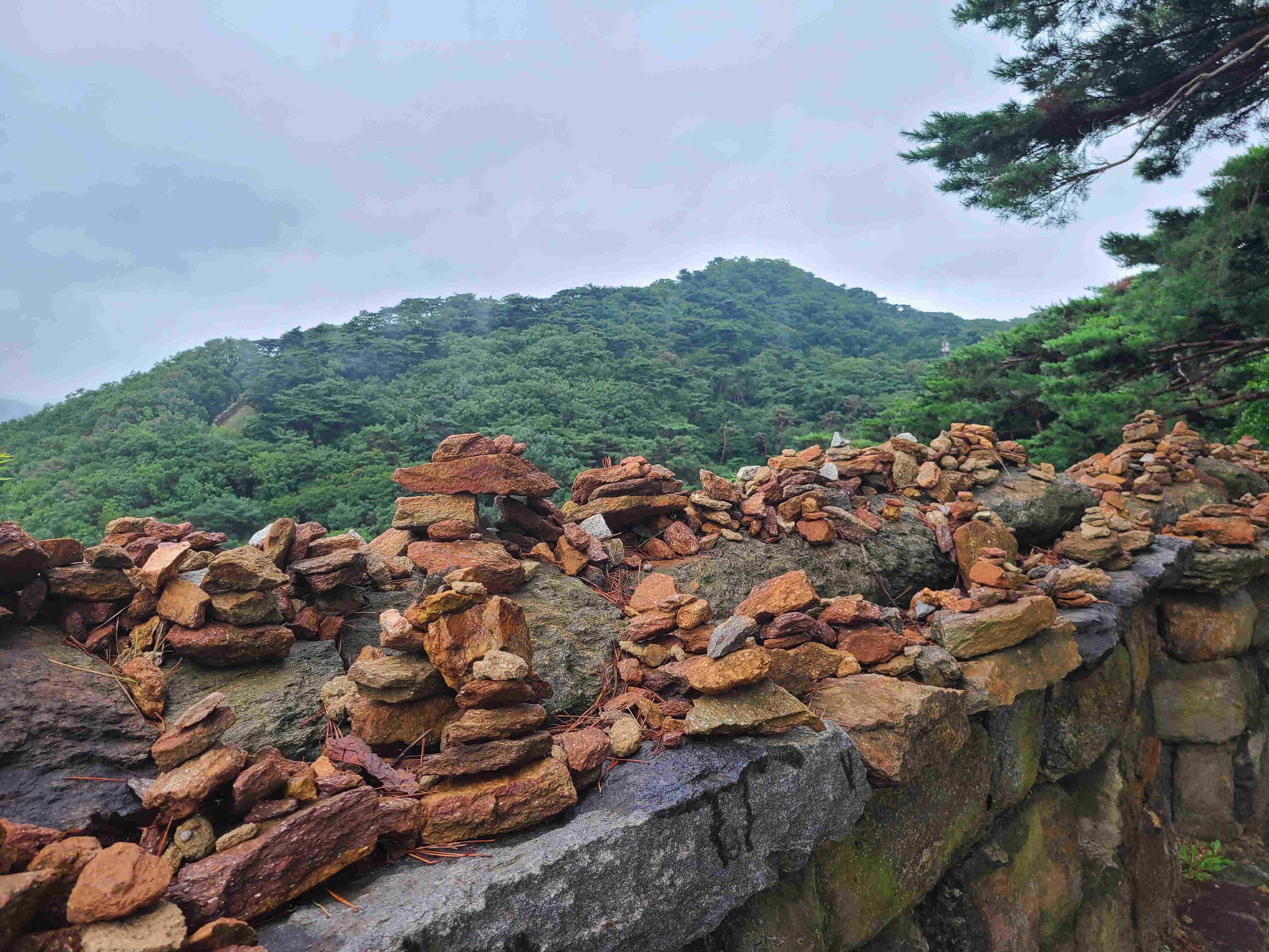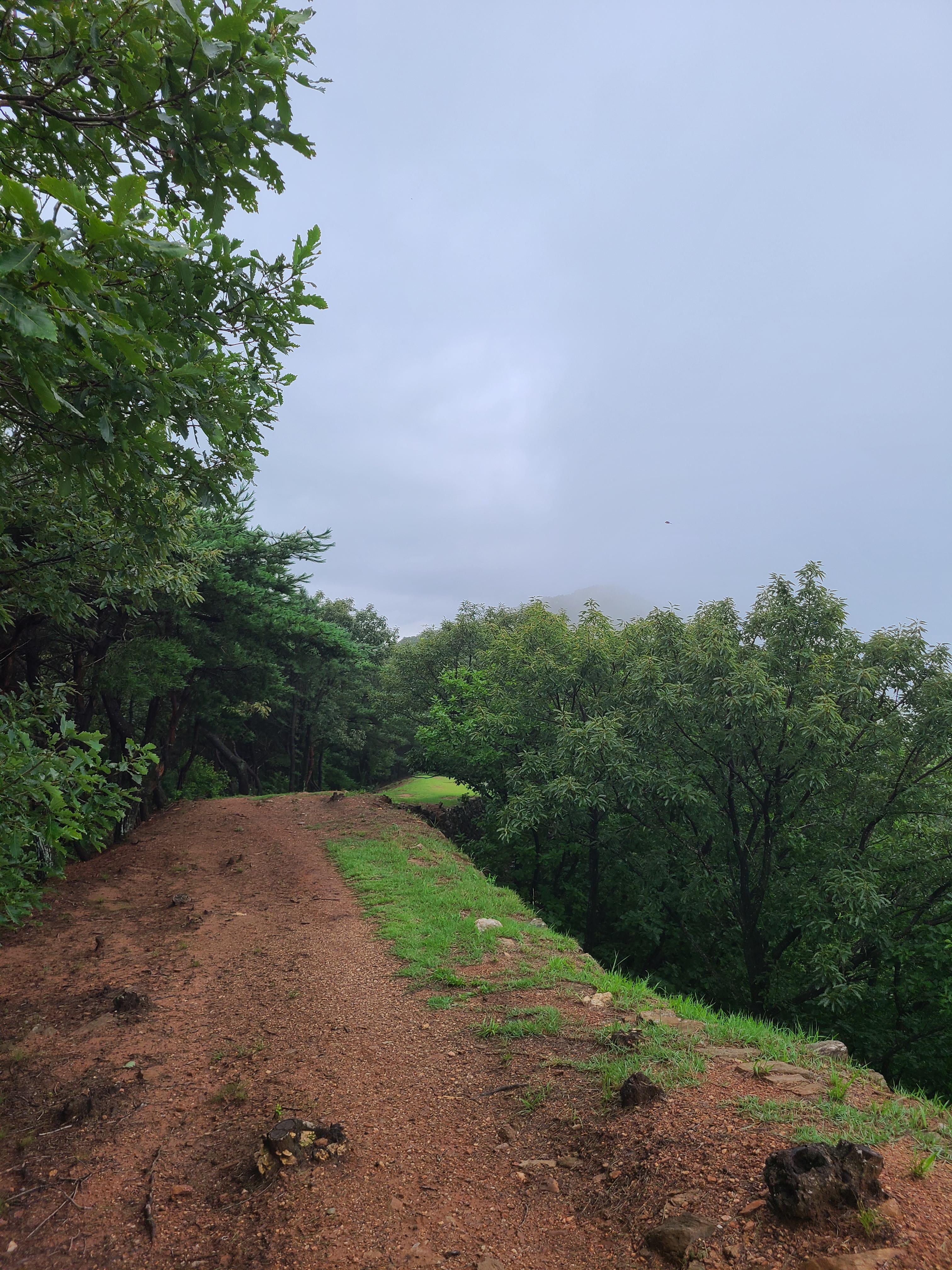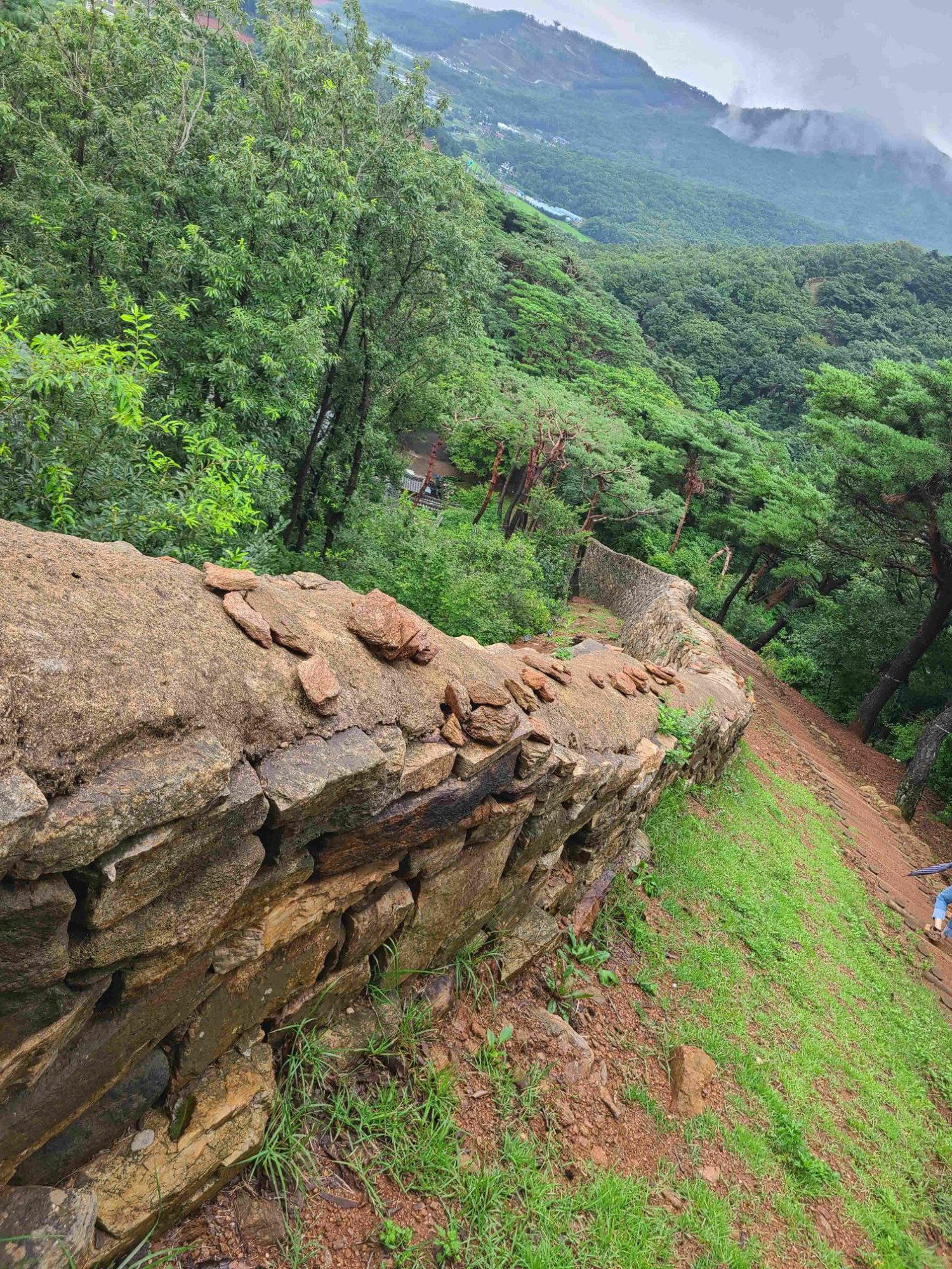 우중에 산성길을 걷는 것이 호젓하고 좋기만 한데 도반은 천둥번개라도 칠까봐 서둘러 앞장서서