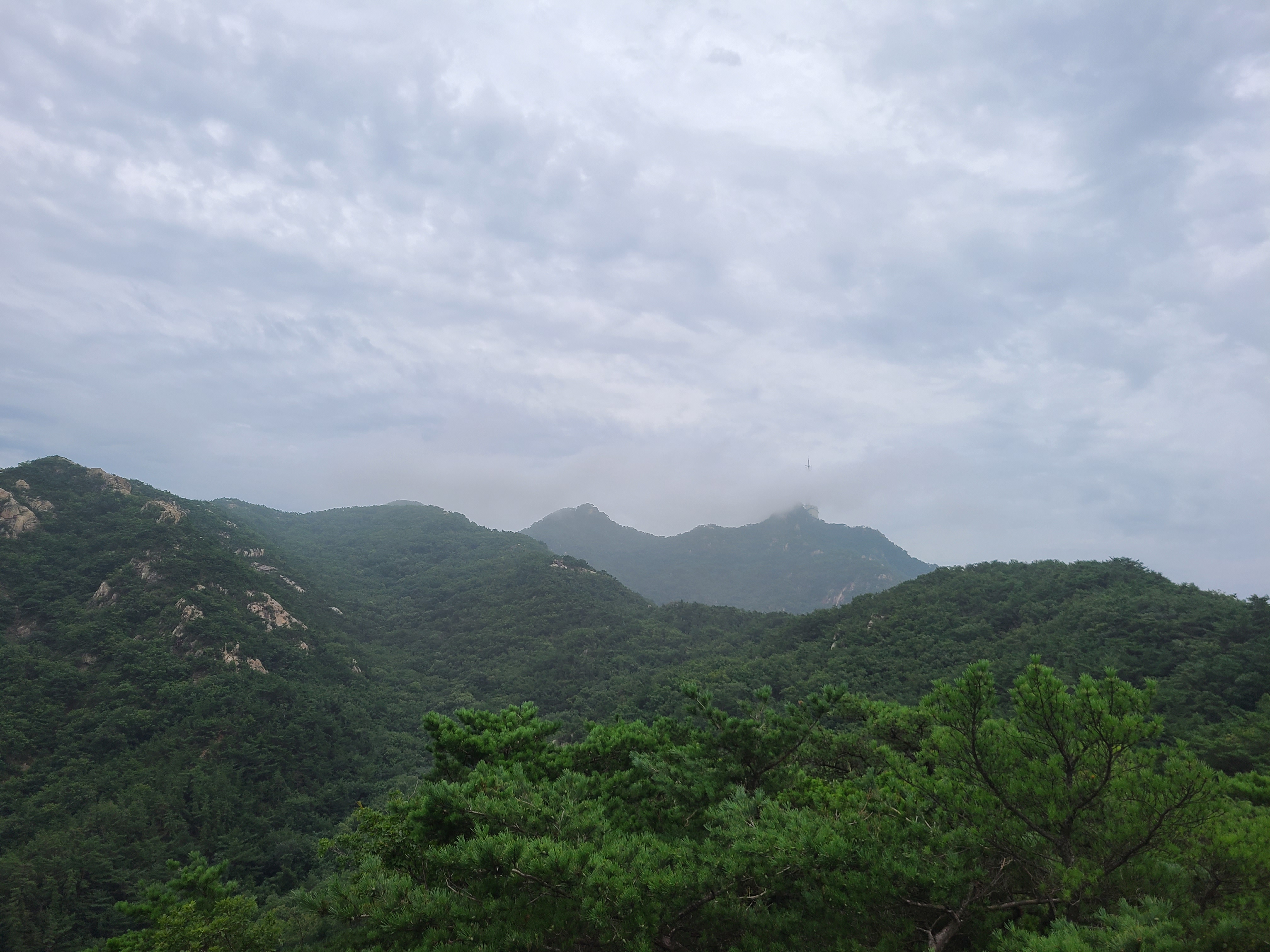 장마중이라 계곡길을 피하고 능선길인 케이블카코스의 자하능선을 선택한다.
