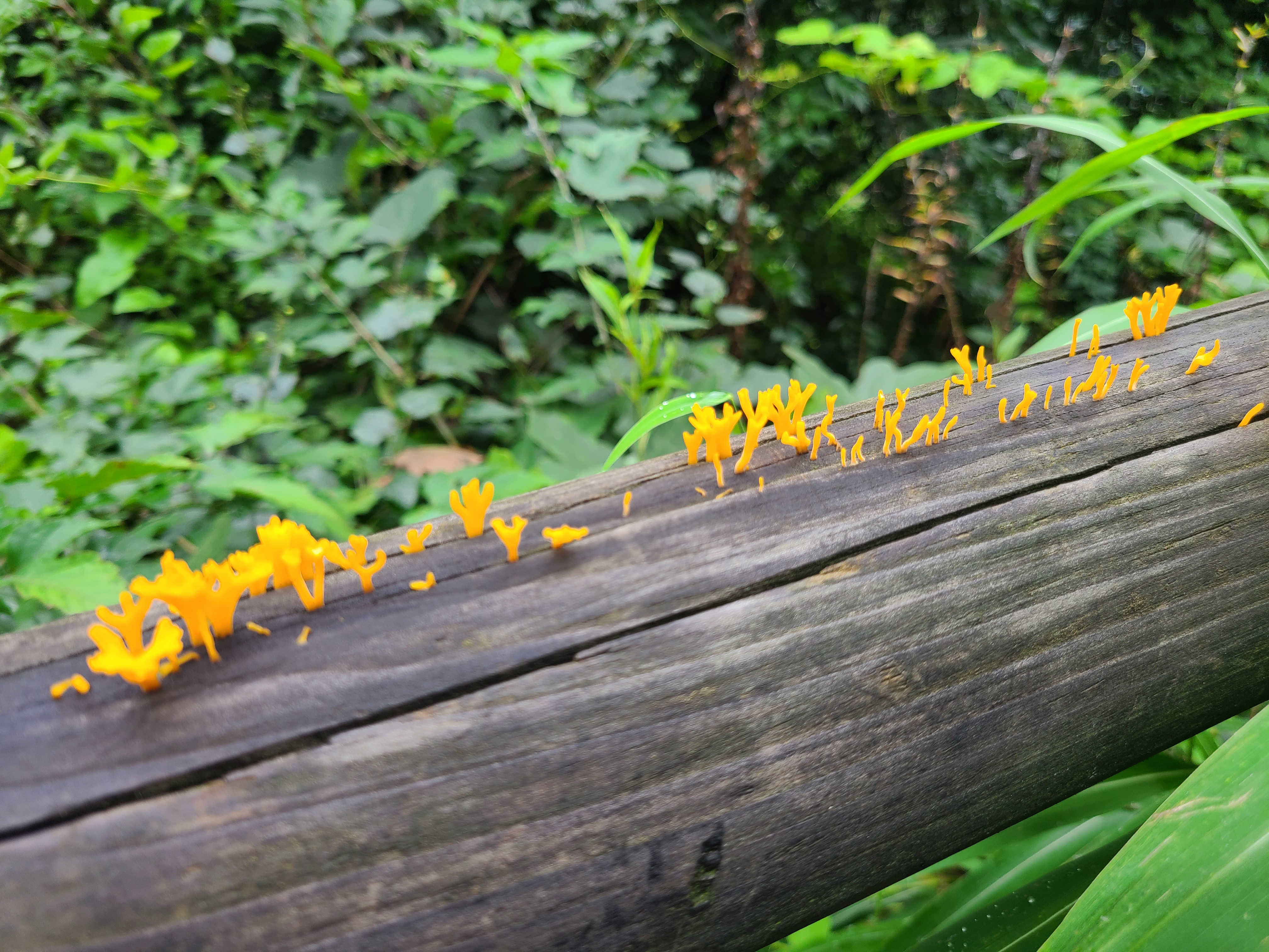 될듯하다. 오랜 장마로 데크옆 안전용 펜스나무에 버섯이 피었다.