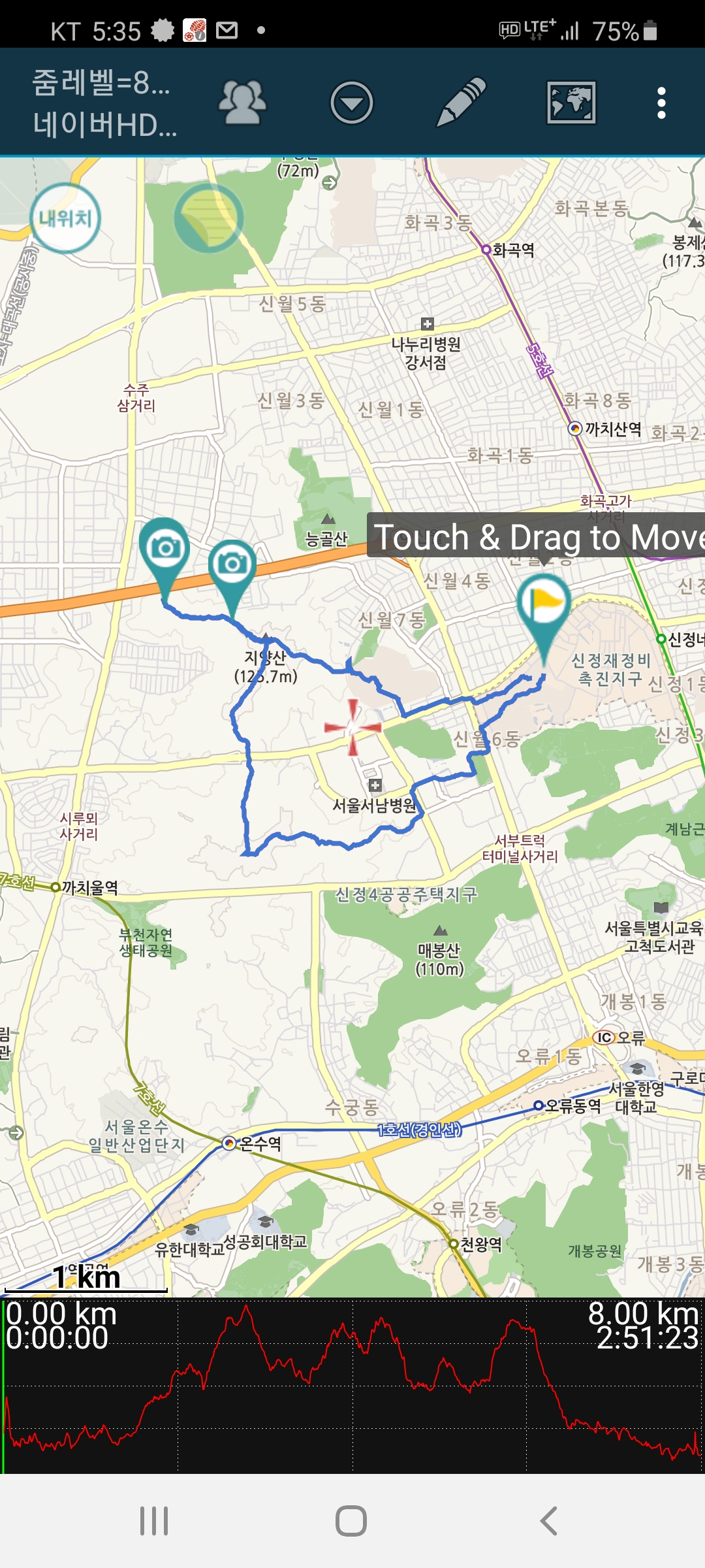 3.차고지-장군봉-터널-지양산-화곡동선사유적지전-지양산-신월시영@, 8.0km