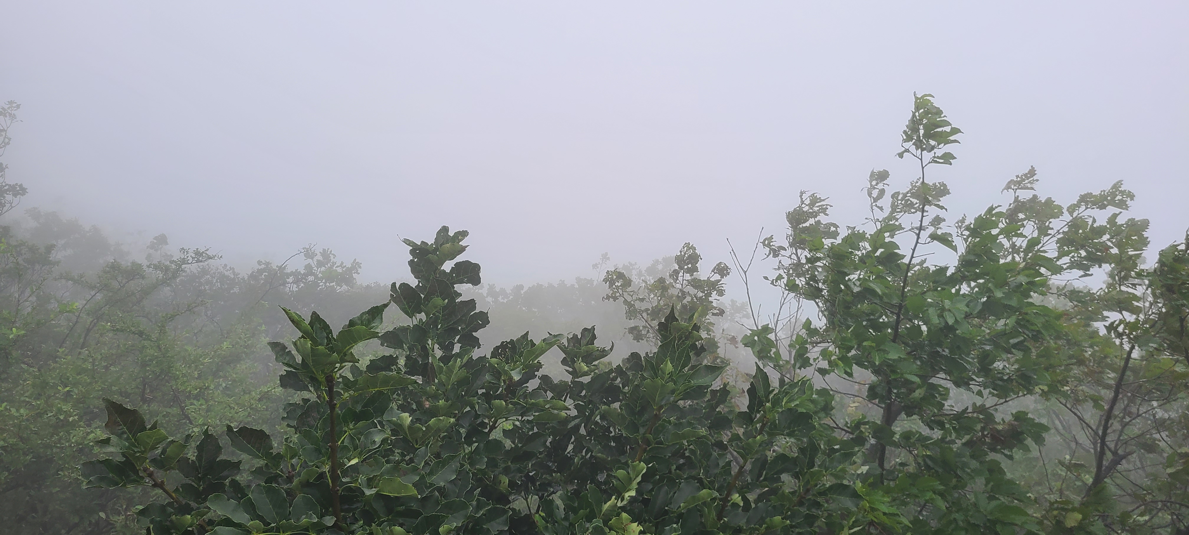 마니산은 안개에 산자락이 둘러싸여 정상부는 아예보이질 않는다.