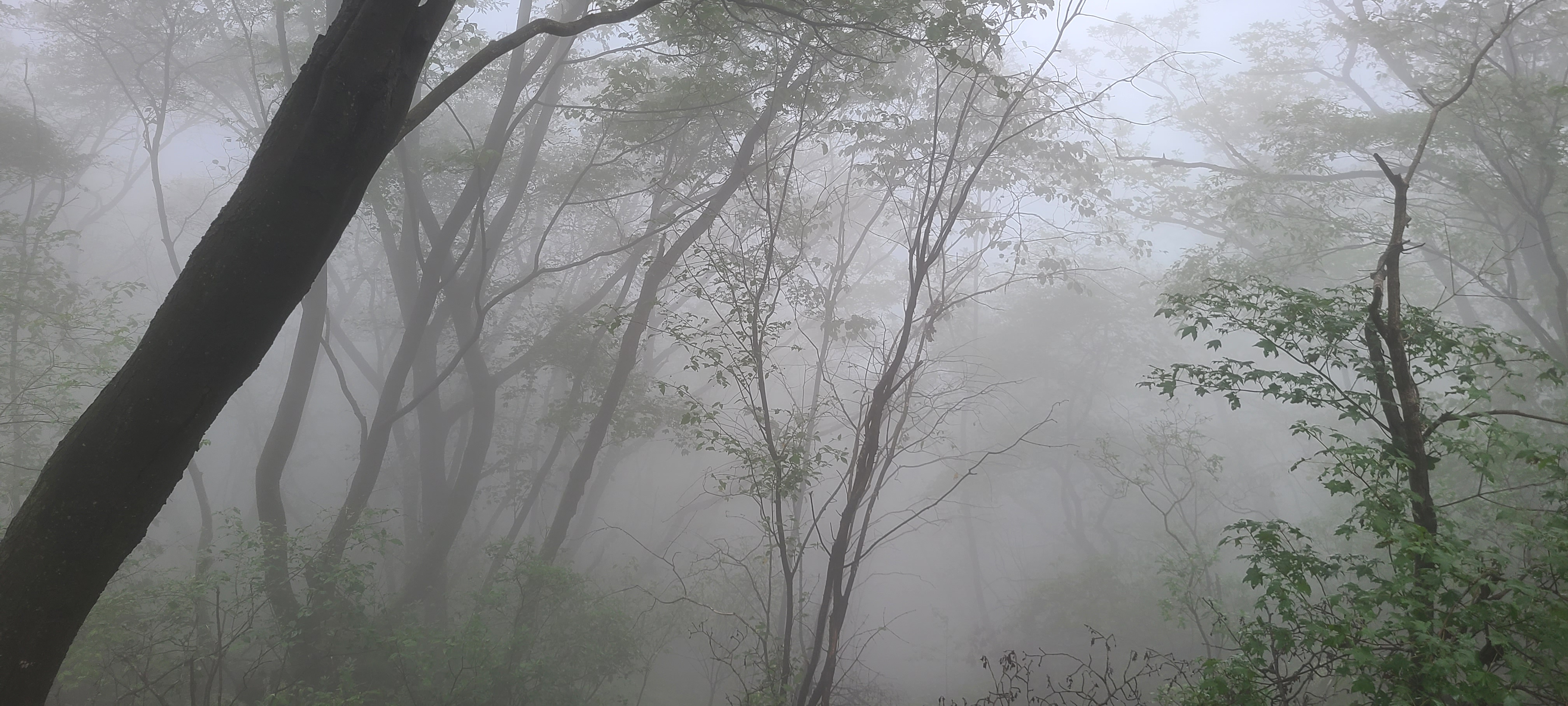 오랫만에 단군로길로 들어선다. 안개가 아니라 자욱한 해무가 끼어 전망은 제로이다.