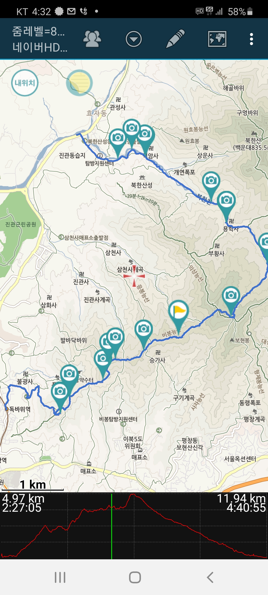 한참 휴식을 취하고는 북한산성입구로 내리니 16:20경.