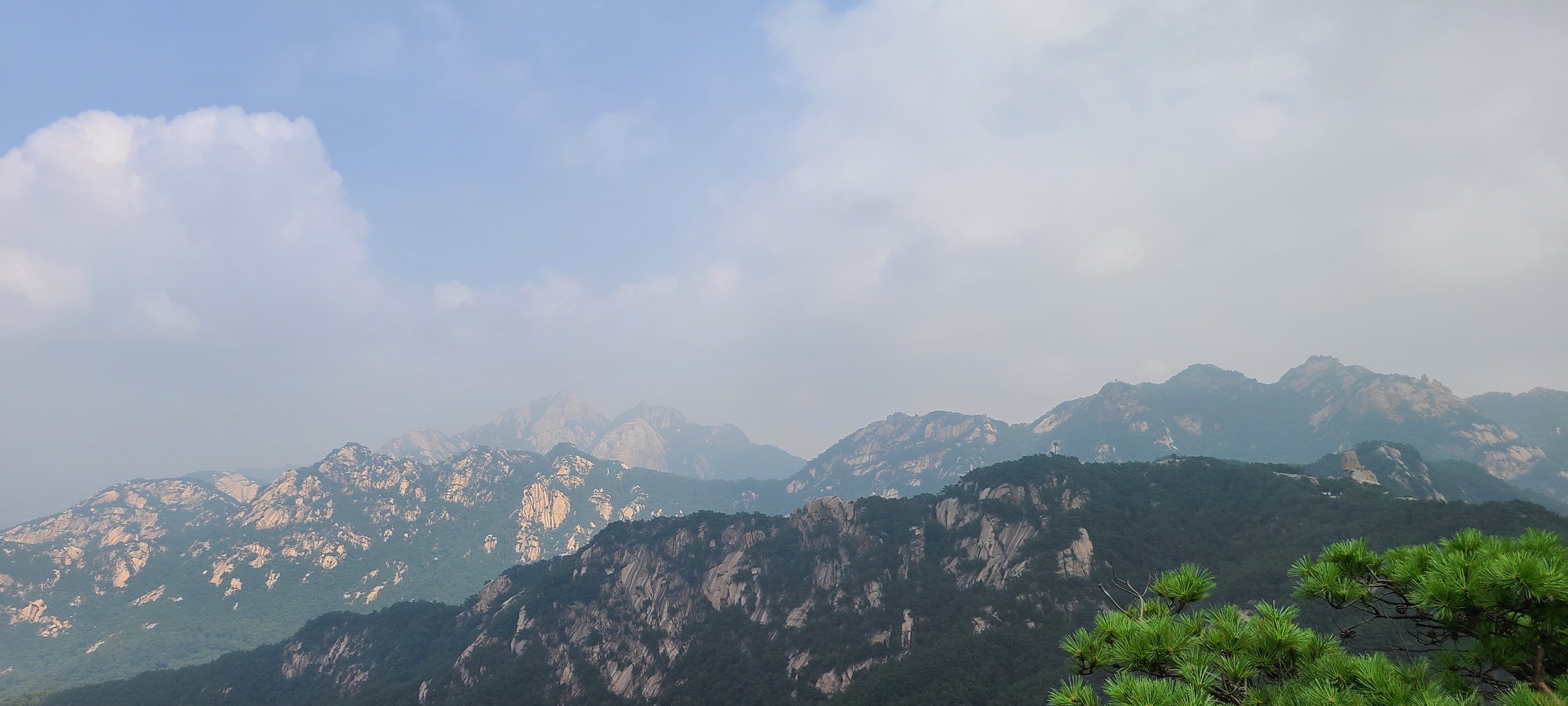 하는 수 없이 아래쪽 소나무 아래를 차지하고 백운봉,만경봉,노적봉등 삼각산 봉우리를 조망해본다.