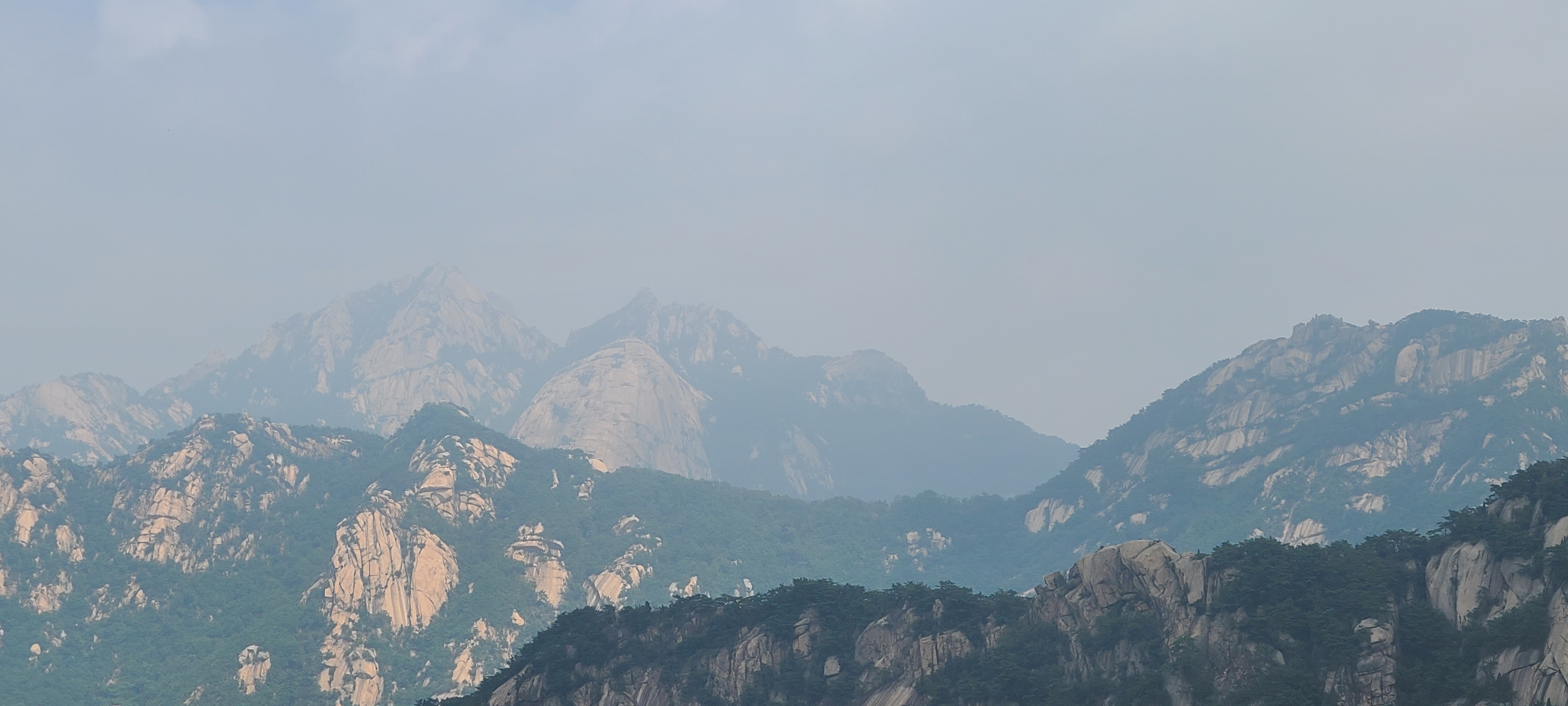 언제 보아도 웅장하고 멋진 모습이다. 오늘은 살짝 구름에 가려 희미한 모습을 보이고있다.