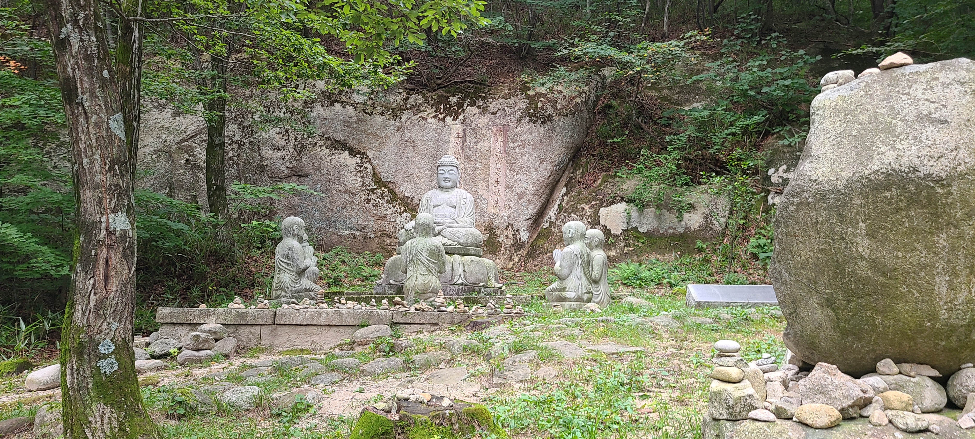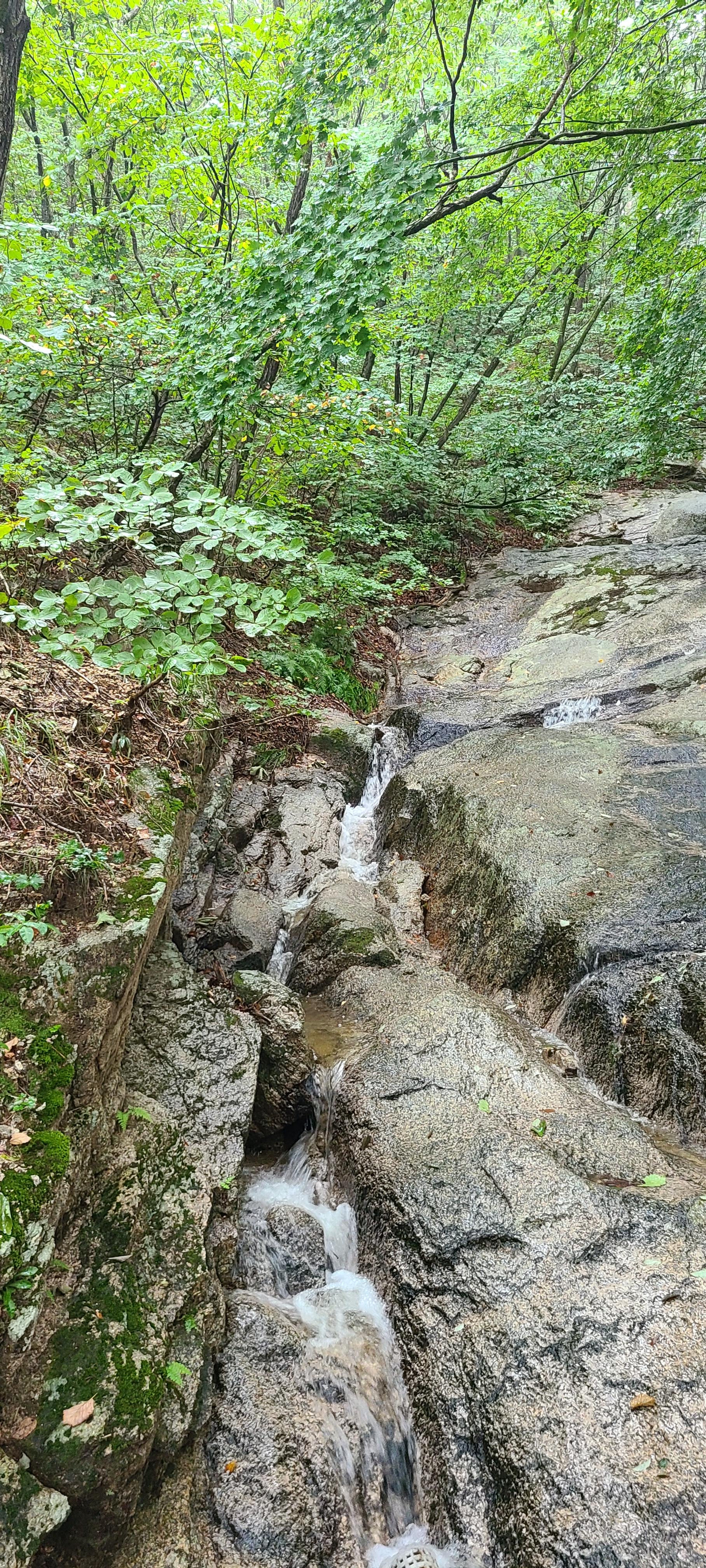 어느정도 내려가니 계곡에 흐르는 물소리가 웅장하다. 큰 계곡은 아니지만 며칠간 내린비로 곳곳에서