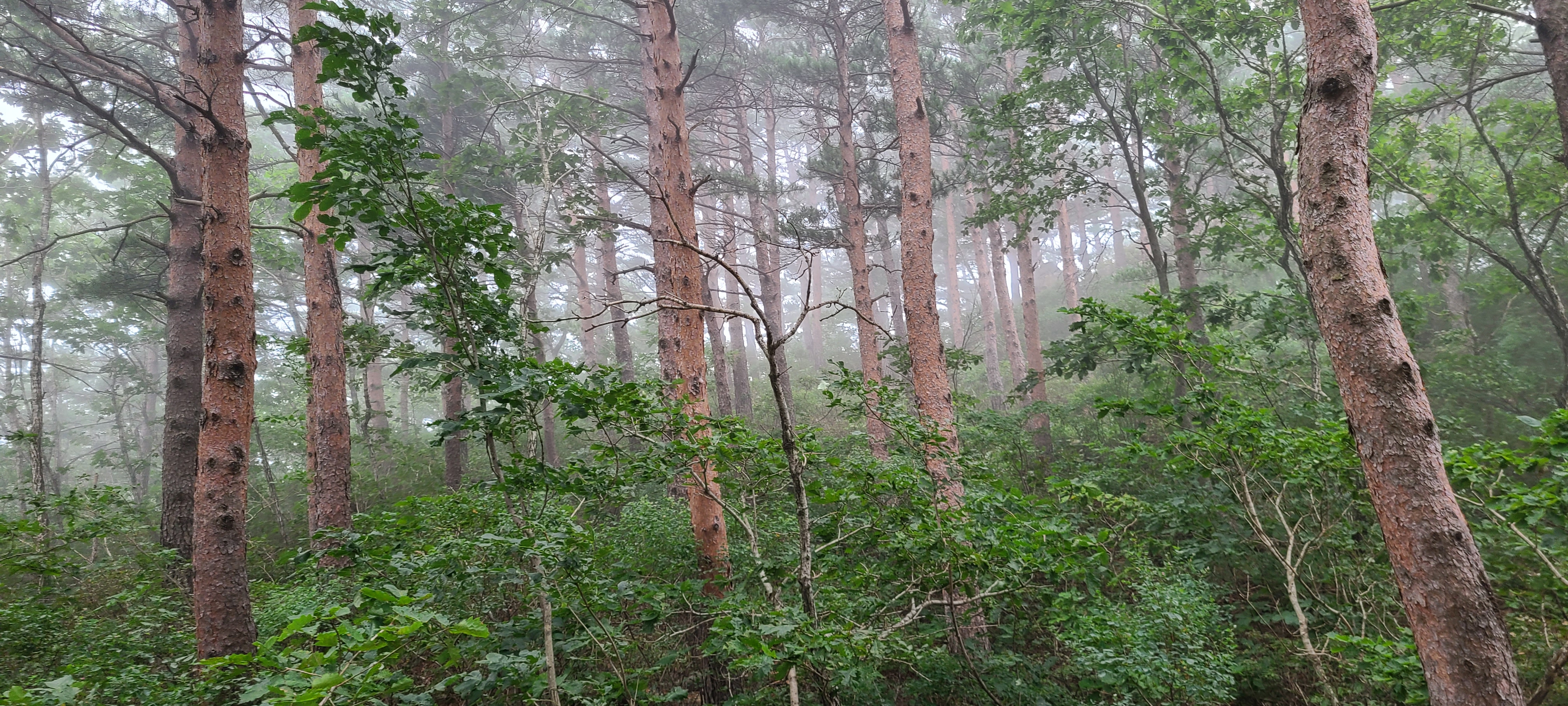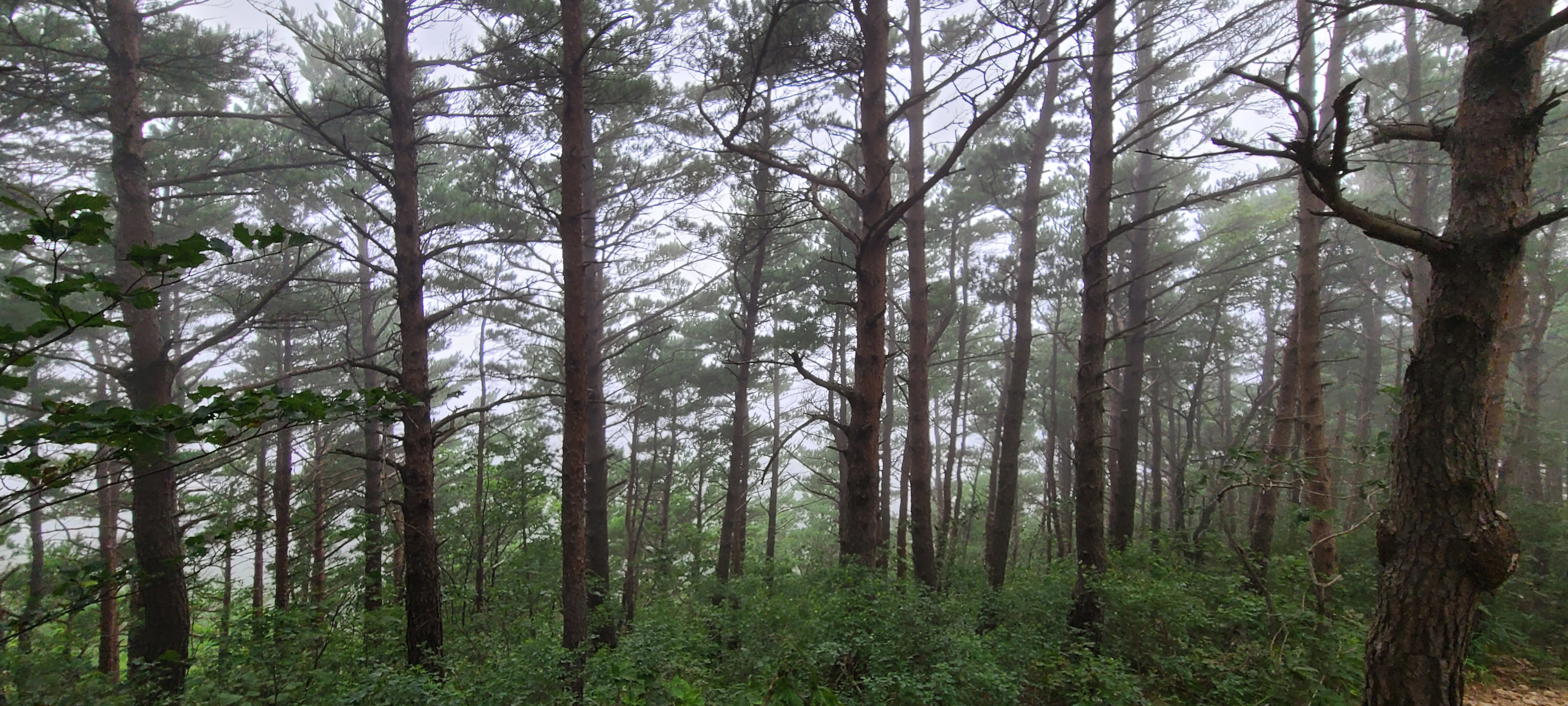 아무도 없는 곳에서 아무것도 보이지 않는 전망을 보고는 다시 숲길을 내려간다.