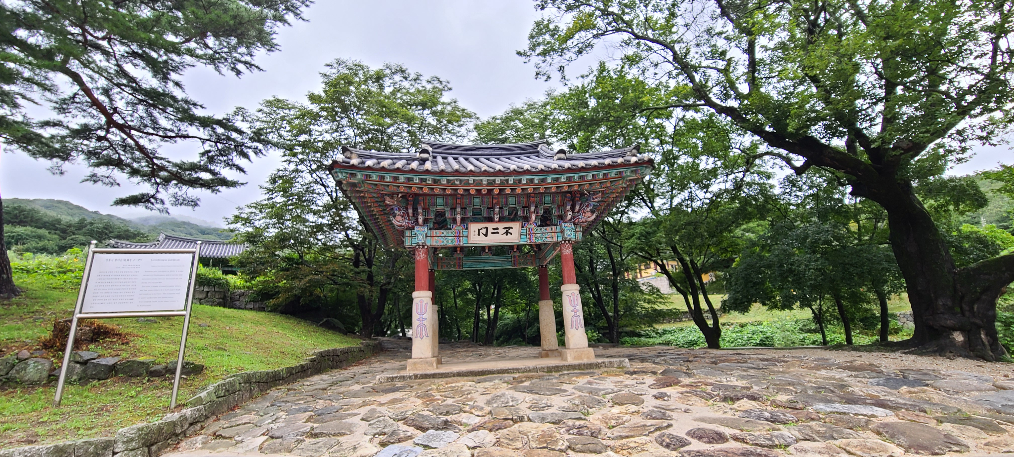 6.25전쟁때 모두 소실되어 다시 중건하였다는데 입구의 불이문만이 소실되지 않았다고 한다.
