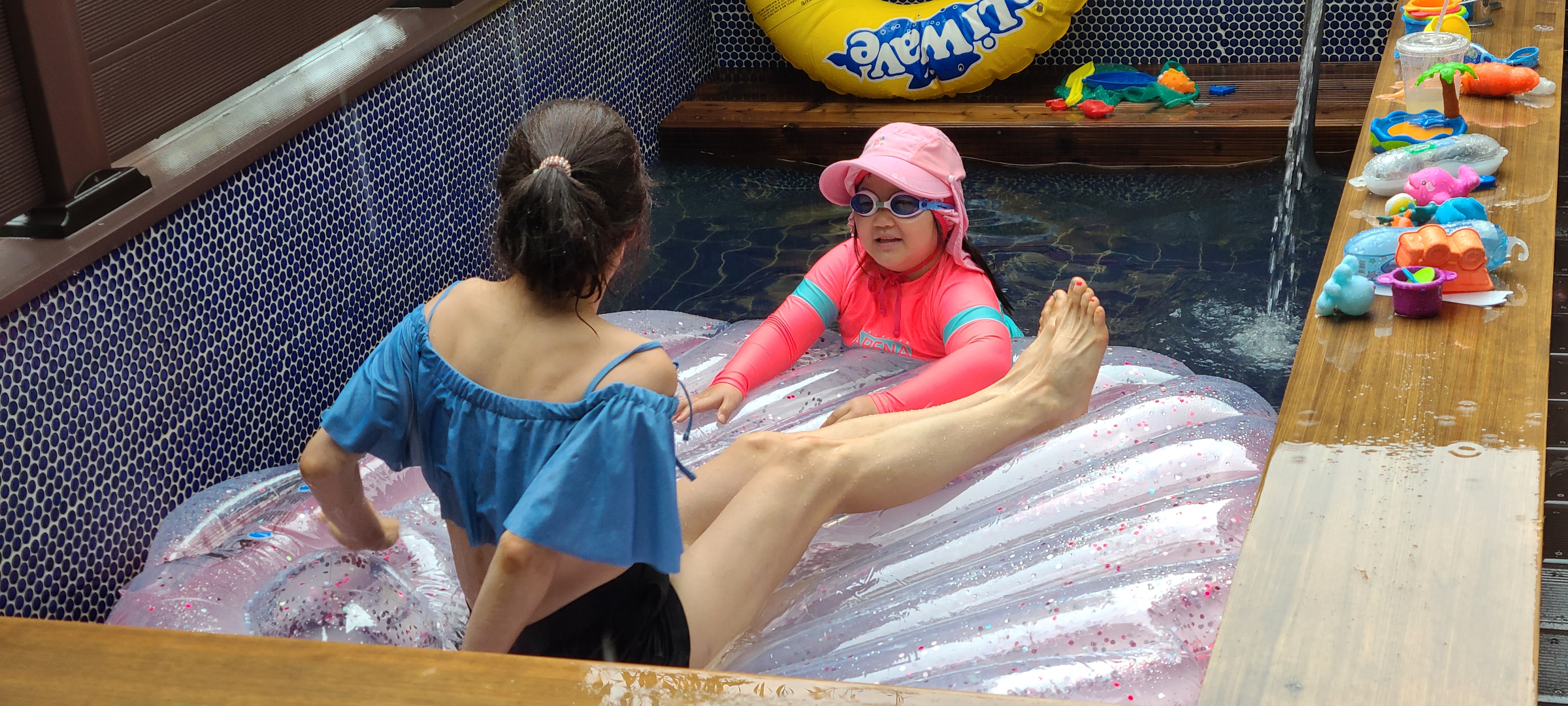 둘째날은 손녀와 딸은 수영장에서 하루종일 놀겠다고하고 사위는 숙소에서 조용히 휴식을 취한다니