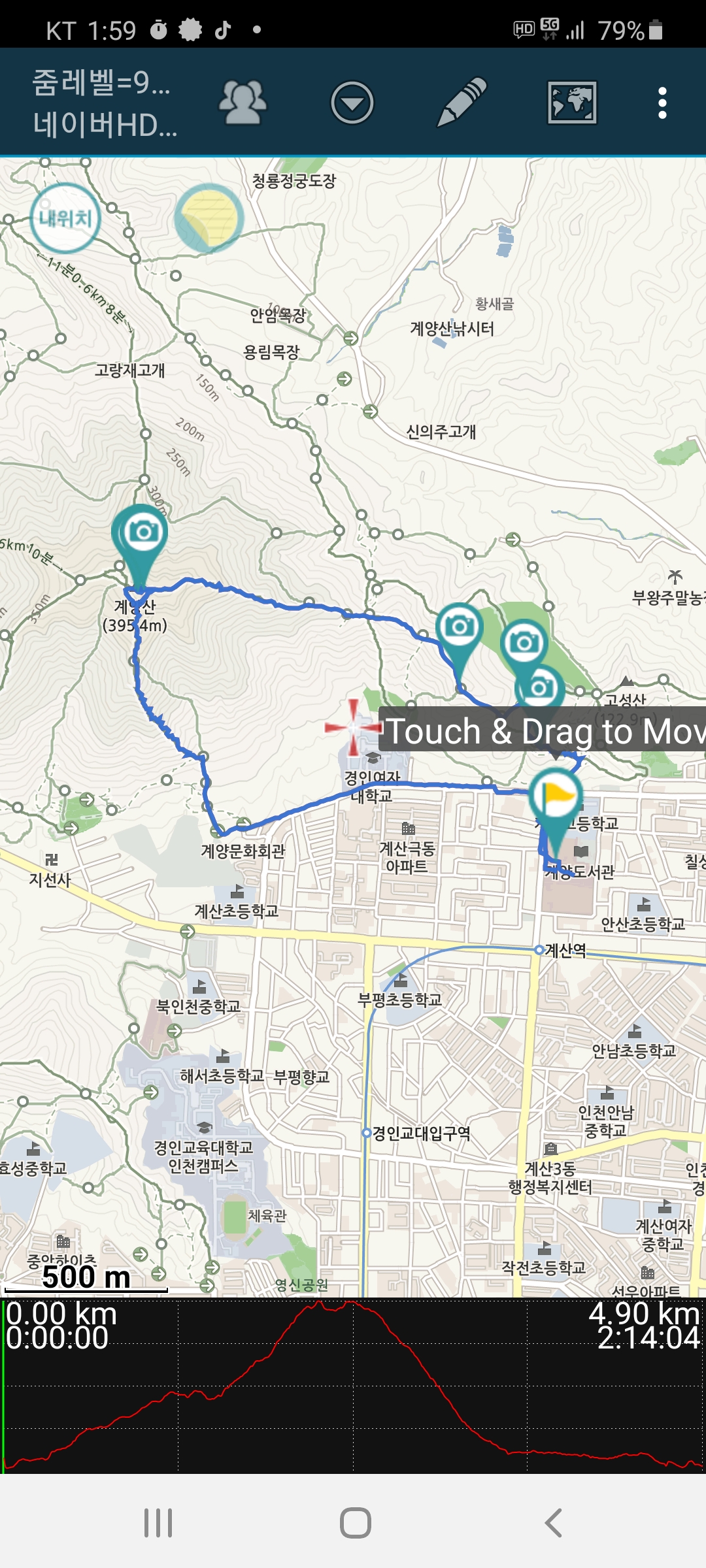 3.계산국민체육공원주차장-산성입구-등산로-계양산정상(395.4m)-계양문화회관-원점회귀, 4.9km
