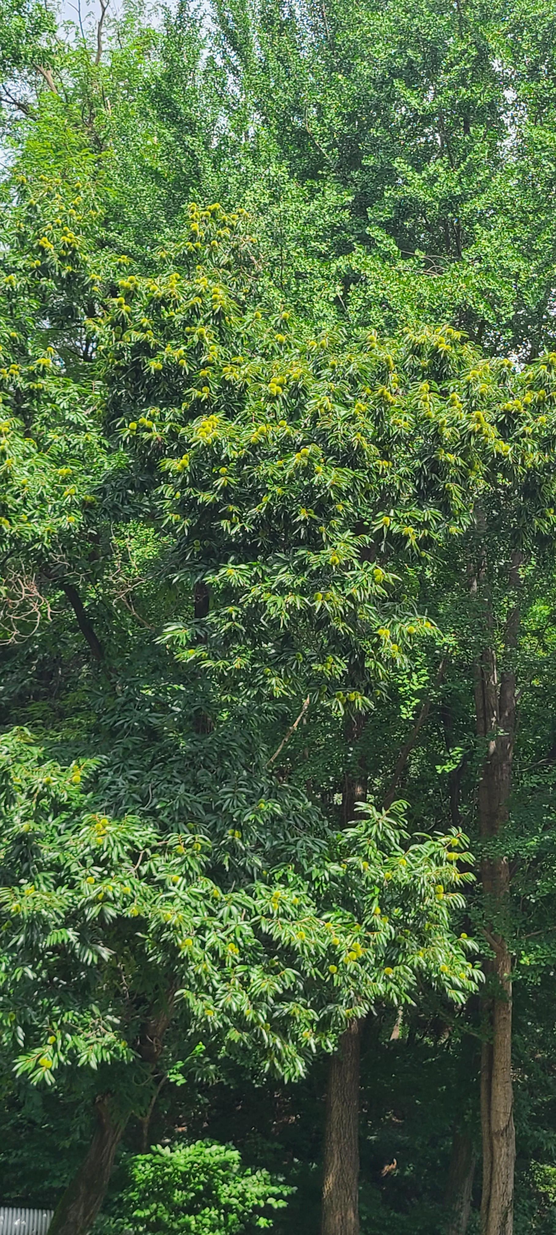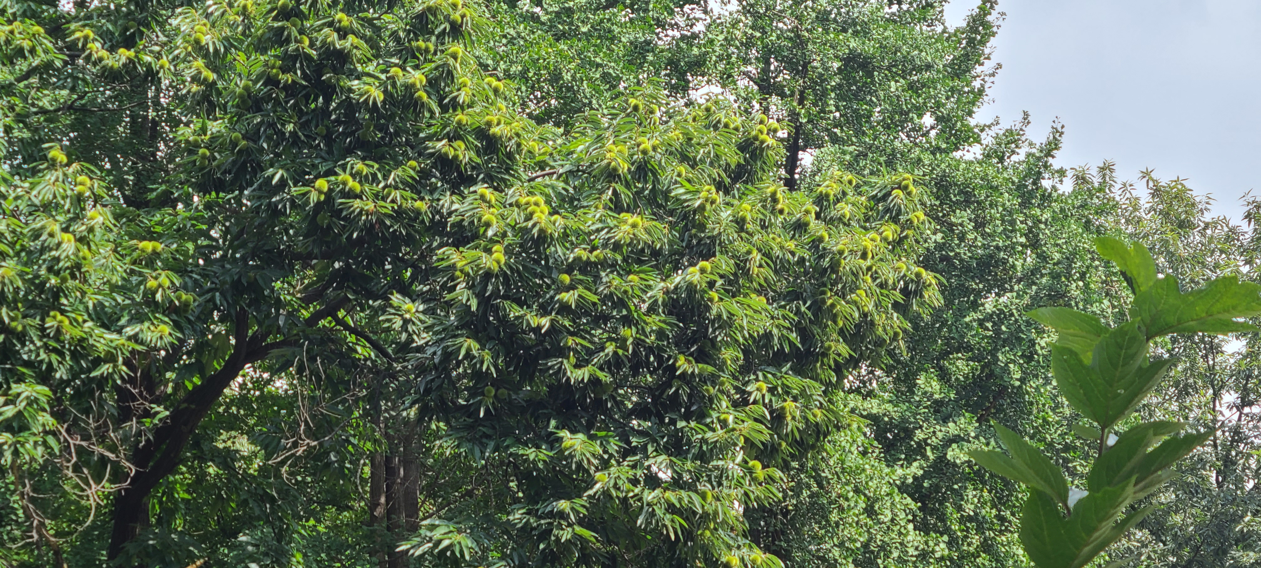 가을이 멀지 않았음인지 밤나무에 밤송이가 주렁주렁달려 익어가고 있다.