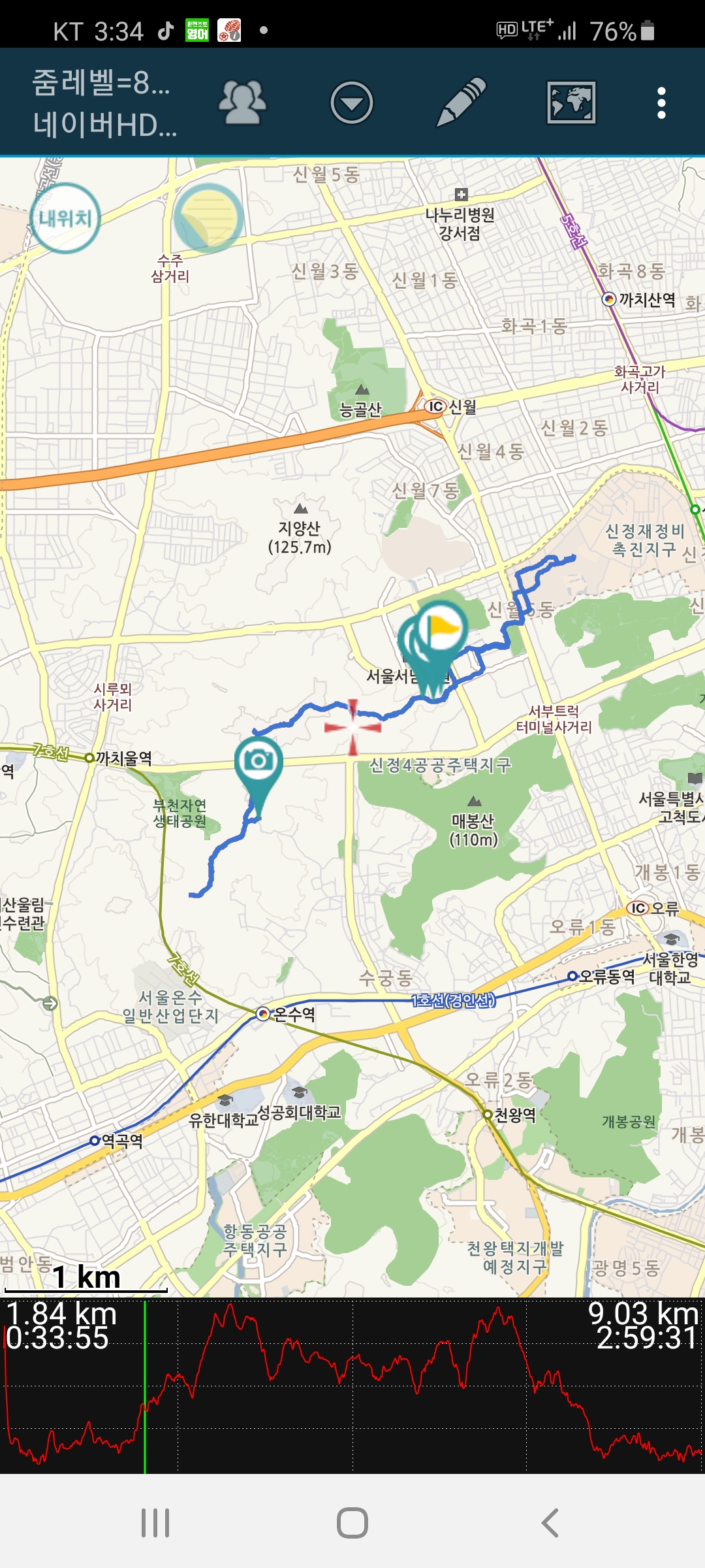 3.차고지-장군봉-온수동-원점회귀, 9.03km