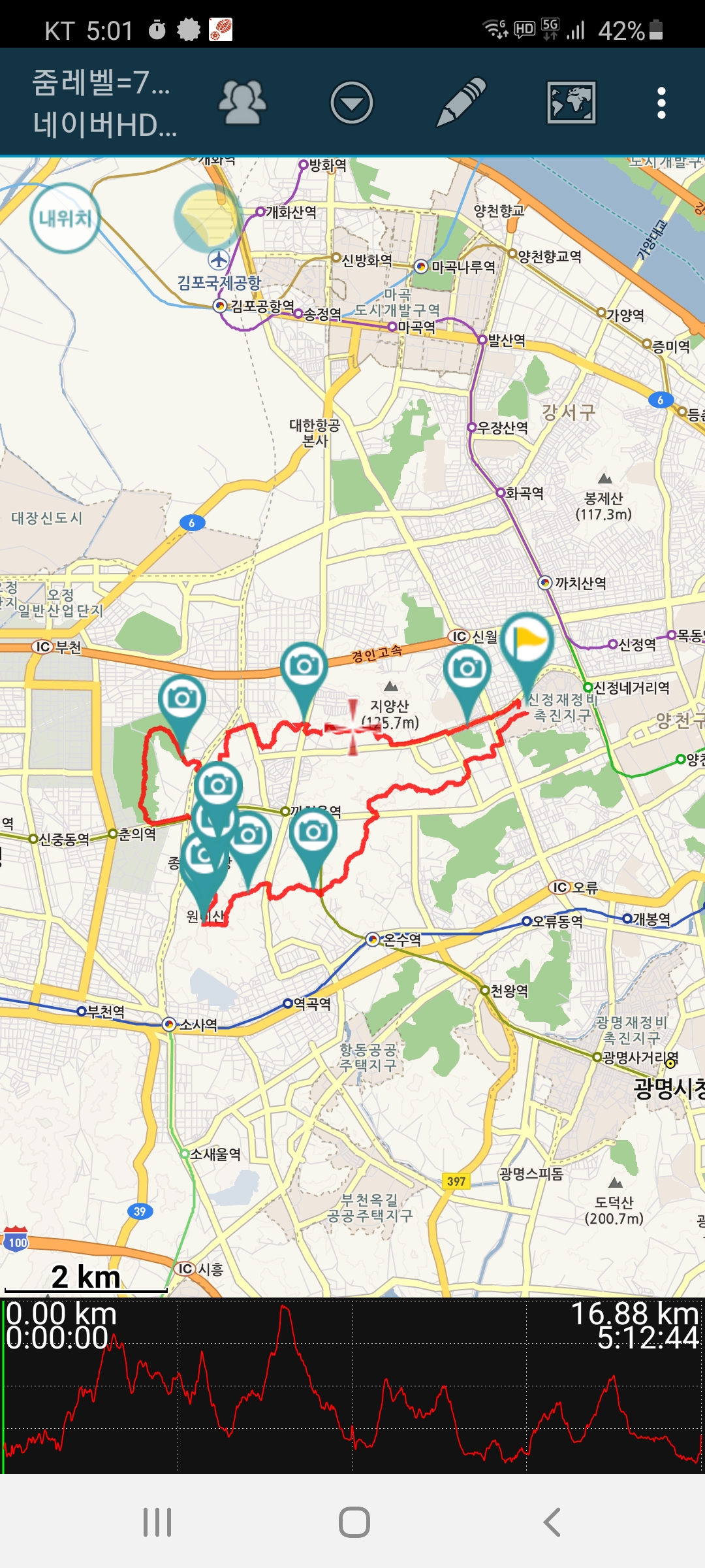 부분적으로 시내도 통과하고 인적 드문곳도 있어 좀 그러하지만 집 가까이에 다닐 수 있는 산이 여러코스가