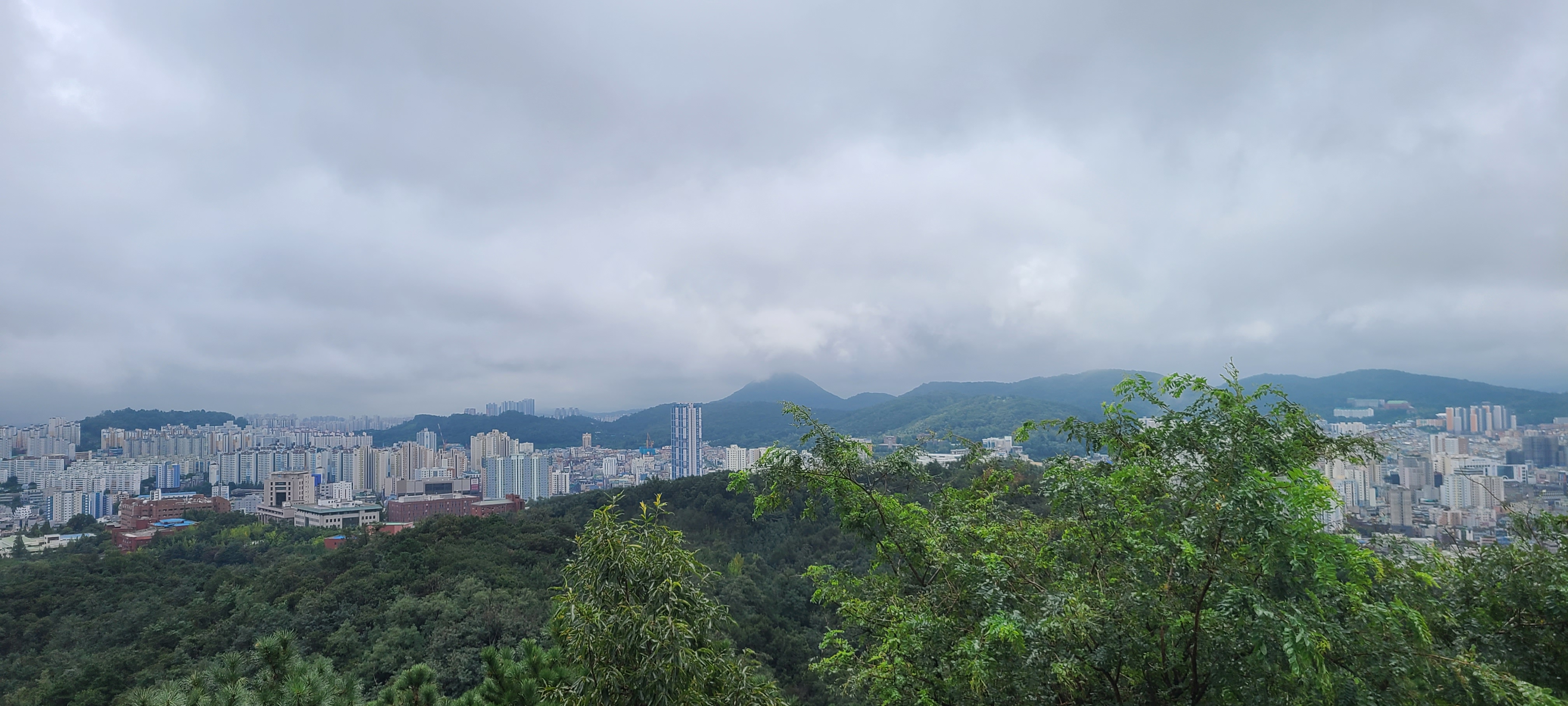 원미산 정상을 헐떡이며 오르니 비는 그쳐있다.
