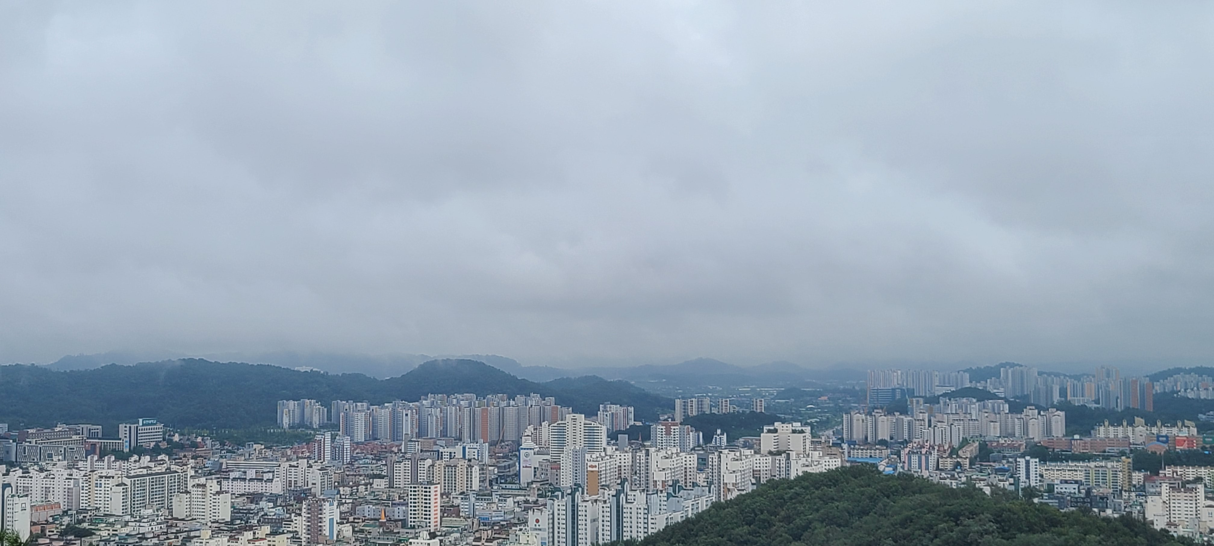 원미산 정상을 헐떡이며 오르니 비는 그쳐있다.