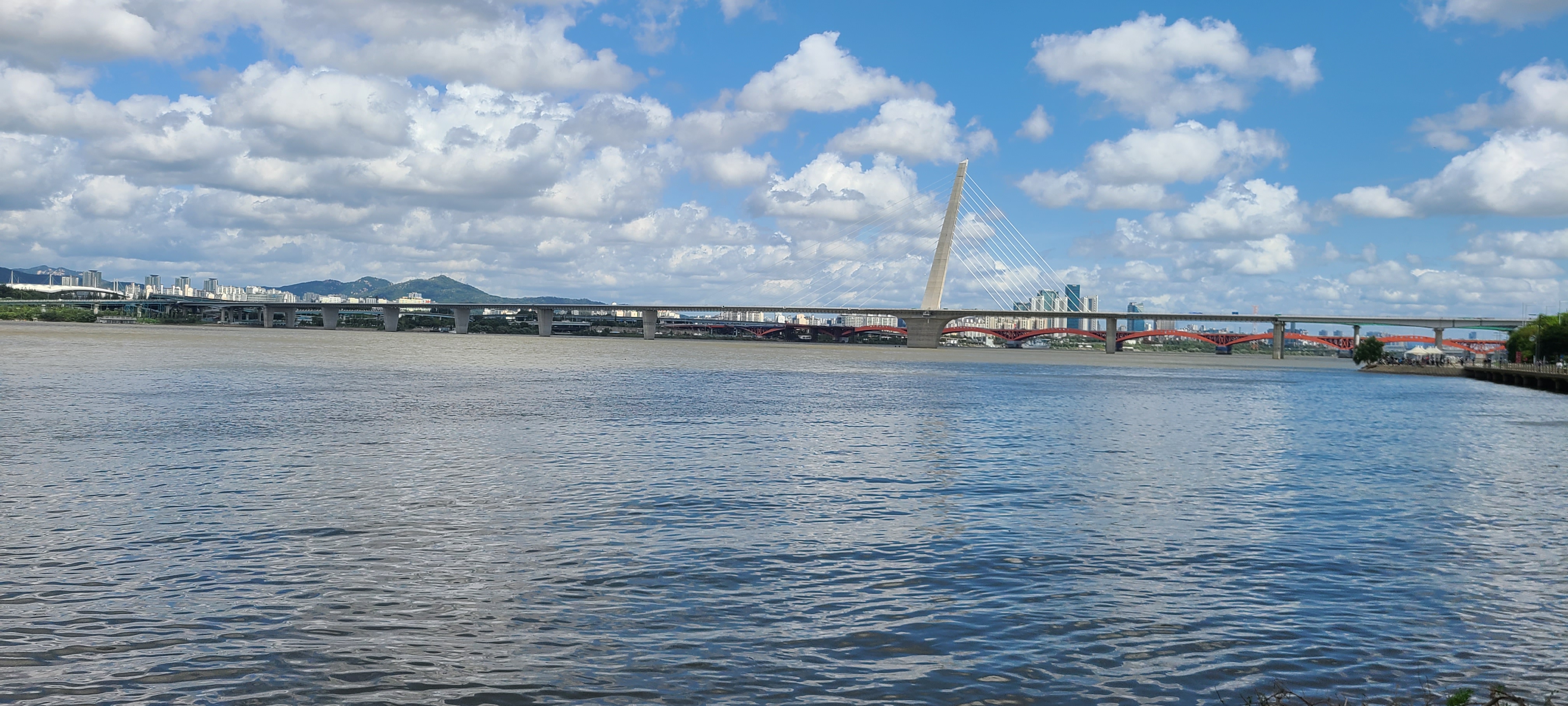 한강합수부로 나가니 강물이 누런 황색으로 출렁이며 그 수량도 적지 않다.